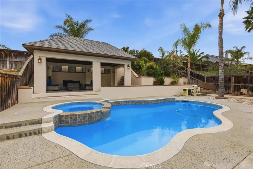 Welcome to this turnkey 5-bedroom, 3-bath home in one of Murrieta’s most desirable family-friendly communities—featuring no HOA, low taxes, and a private resort-style backyard. Freshly painted inside and out, this home makes an immediate impression with a grand double-door entry, soaring ceilings, and abundant natural light. The main level offers newer tile flooring, while the upstairs features plush new carpet throughout. Designed for both everyday living and entertaining, the home includes formal living and dining room, plus a spacious family room with a cozy gas fireplace and views of the backyard oasis. The open-concept kitchen is the heart of the home, featuring granite countertops, a center island, oak cabinetry, and a bright breakfast nook—perfect for gatherings large or small. A highly sought-after main-floor bedroom and full bath provide ideal flexibility for guests, multigenerational living, or a private office. A dedicated laundry room downstairs adds convenience. Upstairs, the expansive primary suite offers a relaxing retreat with vaulted ceilings, dual-door entry, and pool views. The ensuite bath includes a soaking tub, walk-in shower, dual vanities, and a large walk-in closet. Three additional spacious bedrooms complete the second level. Step outside to your private backyard retreat—complete with a heated pool and spa, mature fruit trees, and a gazebo ideal for entertaining or relaxing year-round. Additional highlights include a 3-car garage with built-in storage. Conveniently located near top-rated schools, shopping, dining, medical centers, and just minutes from Temecula wineries with easy access to the 15 and 215 freeways.