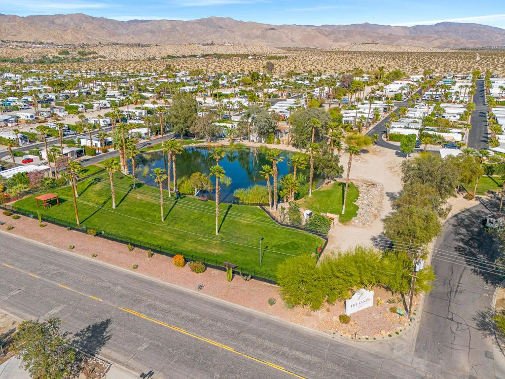 Located in the gated 55+ Sands RV & Golf Resort, this well-maintained 2016 park model offers an affordable opportunity to enjoy resort-style desert living. This 1 bedroom, 1 bathroom home with an efficient, open layout that maximizes comfort and functionality.The kitchen includes a full-size gas range and ample cabinetry, opening to the main living area. The home is equipped with two mini-split systems--one in the bedroom and one in the living area--providing energy-efficient heating and cooling year-round.Exterior features include a covered back deck, paver driveway, covered carport with generous parking space, and a Tuff Shed for additional storage. Low-maintenance exterior makes this an ideal full-time residence or seasonal retreat.Space rent is $680 per month and includes access to community amenities such as heated pool and spas, pickleball courts, fitness center, clubhouse, dog parks, and gated entry. Golf course access is available separately through membership.Conveniently located just minutes from Palm Springs International Airport, shopping, dining, and quick access to Interstate 10 for easy travel throughout the Coachella Valley.Park approval required.