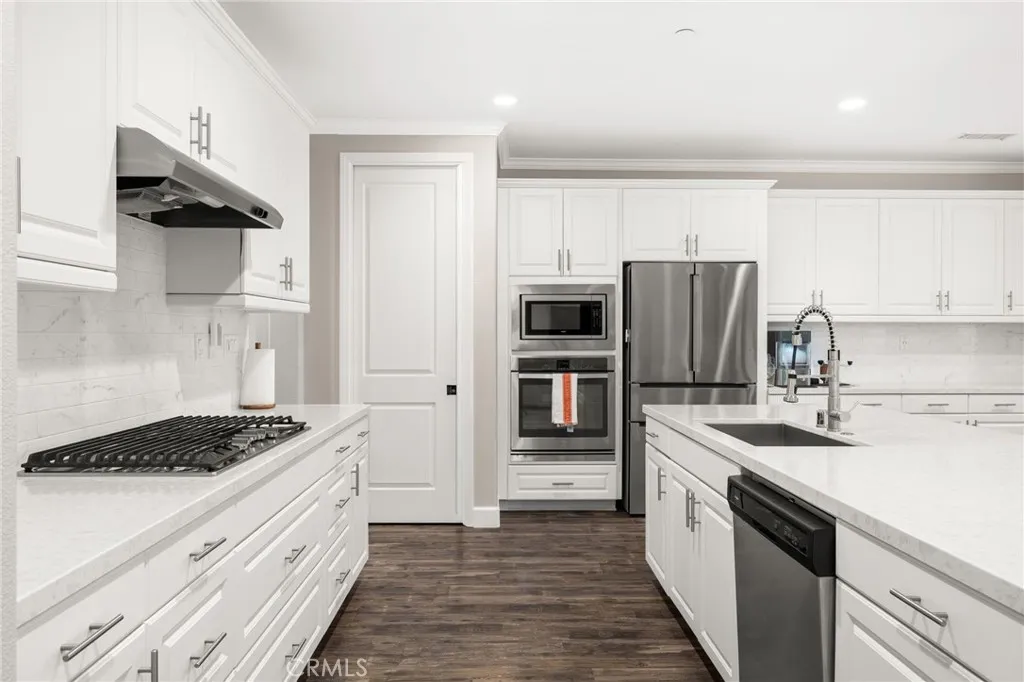 Welcome to 16366 Cameo Court in the highly sought after Cameo community of Whittier. Built in 2017, this beautifully maintained 5 bedroom, 4.5 bathroom home offers 3,579 square feet of thoughtfully designed living space. The open concept layout features a versatile flex room near the entry, an expansive great room filled with natural light, and a gourmet kitchen with quartz countertops, stainless steel appliances, generous cabinetry, and an oversized island ideal for entertaining. A desirable main level bedroom with ensuite bath provides flexibility for guests or multigenerational living. Upstairs includes four additional spacious bedrooms, a large loft perfect for a secondary living area or media space, and an oversized laundry room. A whole house fan enhances comfort and efficiency. Residents enjoy resort style amenities including pool, spa, BBQ areas, playground, and beautifully maintained green space, offering an exceptional lifestyle in one of Whittier’s premier newer communities.