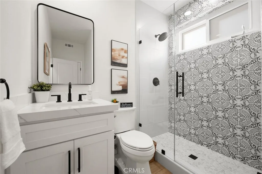 Welcome to one of Rancho Santa Margarita’s most impressive home inside a private gated community, just minutes from RSM Lake and surrounded by award-winning schools. With a low HOA and low tax rate, this home offers the rare combination of luxury, privacy, and long-term value. From the moment you walk through the brand-new custom front door, you’ll feel the difference. Every detail has been thoughtfully upgraded to create a clean, modern look that feels like a professionally designed model home. The entire interior showcases luxury vinyl plank flooring throughout, paired with 8-inch baseboards, fresh interior paint, and updated lighting for an elevated finish. The floor plan is both expansive and versatile, offering 5 bedrooms and 4 full bathrooms, including a highly desirable main-floor bedroom with direct access to a full bath; perfect for guests or extended family. At the heart of the home is a massive open kitchen designed for gathering. Featuring white shaker cabinetry, quartz countertops, a farmhouse sink, newer appliances, and an oversized island, the space flows seamlessly into the family room and dining area, highlighted by custom wainscoting. It’s bright, open, and built for entertaining. Ascending up the stairs completed with new railing, you’ll find four additional bedrooms, all finished with matching LVP flooring, upgraded bathrooms with custom shower doors, and a beautifully remodeled laundry room. A spacious loft provides flexibility for a media room, office, or can easily be converted into a 6th bedroom per the original builder option. The primary suite occupies its own quiet wing of the home, creating a true retreat. Enjoy dual walk-in closets, a soaking tub, and a separate walk-in shower — a private space designed for relaxation. Step outside and you’ll see the care continues. The backyard has been completely redesigned with artificial turf, vinyl fencing, and an Elite-Wood Ultra insulated patio cover complete with recessed lighting and a ceiling fan — creating a comfortable, year-round outdoor living experience. For added peace of mind, the home has been fully repiped, every window fitted with new Milgard windows, a new garage door, and fresh exterior paint. Simply put, it feels new — because nearly everything is. Homes with this level of finish, space, and location inside a gated Rancho Santa Margarita community rarely come available. This is the kind of property that checks every box; style, function, and location; all in one.