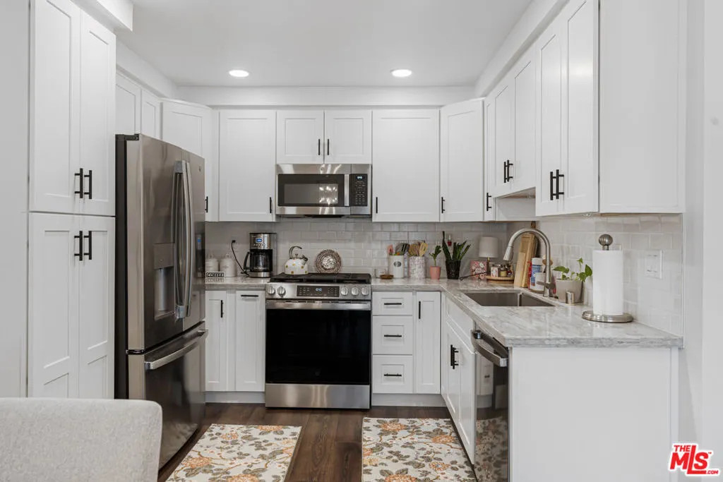 Welcome to this beautifully refreshed 2-bedroom, 2-bath condo offering 962 sq ft of comfortable living with a long list of recent improvements. The heart of the home is a spacious, completely remodeled kitchen featuring stunning quartz countertops, sleek shaker cabinets with soft-close technology, and brand new stainless steel appliances. The expanded layout includes a single basin sink, making meal prep a joy. Durable, waterproof laminate floors flow seamlessly throughout, providing both style and easy maintenance. Over the past 8 months, the home has been upgraded with brand new central heating and A/C including new ducting, a new electrical panel, and a new earthquake shut-off valve at the gas meter for added peace of mind. Inside, you'll find all-new interior paint, stylish new ceiling fans, updated mirrored closet doors, and fresh finishes throughout. The kitchen features a new backsplash and added water line to the refrigerator, while the bathrooms shine with a new vanity, new mirror, updated hardware, and a new tub enclosure. Additional upgrades include new plumbing and gas fixtures at the laundry area. Enjoy resort-style community amenities including a pool, playground, outdoor cooking area, and sport court perfect for relaxing and entertaining. No Mello Roos