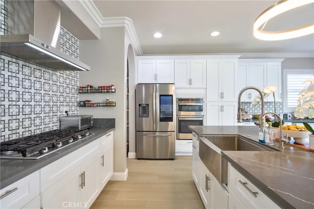 Welcome to this extensively upgraded pool home in the desirable Chelsea Estates community of South Temecula. Offering 3,717 square feet of beautifully designed living space which includes a private movie theater (could be converted to a 5th bedroom). From the moment you arrive, the freshly painted exterior, new garage door, and pristine curb appeal set the tone for what awaits inside. Step through the front door to discover a completely refreshed interior featuring all-new flooring throughout, including luxury vinyl plank, marble, and tile, complemented by new baseboards, crown molding, plantation shutters, and designer light fixtures. At the heart of the home is the recently remodeled chef’s kitchen — thoughtfully designed with white shaker cabinetry, quartz countertops, a farmhouse sink, custom tile backsplash, new stainless steel appliances, and a statement vent hood. The open layout flows seamlessly into the family room, highlighted by a stunning stacked stone fireplace, creating the perfect space for gathering and entertaining. The bathrooms have been tastefully remodeled with modern finishes, offering spa-like comfort throughout. A recently replaced HVAC system, tankless water heater, whole-house water filtration system, and an expansive paid-for solar system with Tesla charger provide outstanding energy efficiency and long-term savings. Step outside to your private backyard retreat. Enjoy new artificial turf, a fully equipped outdoor kitchen, and a sparkling pool featuring new tile and newer pool equipment — ideal for relaxing or hosting unforgettable summer gatherings. The finished garage includes epoxy flooring, adding both durability and style. Located just minutes from top-rated schools, award-winning wineries, premier golf courses, shopping, dining, and Pechanga Casino, this exceptional Chelsea Estates home offers the perfect blend of upscale living and everyday convenience.