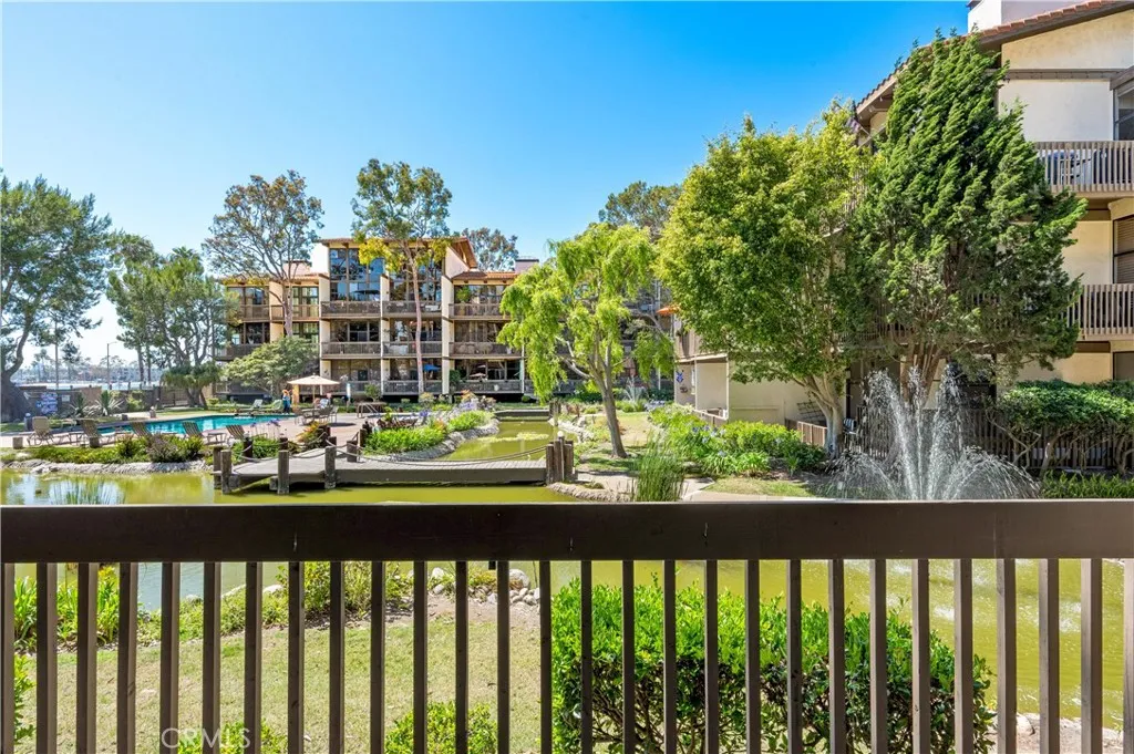 This light and bright unit offers an open floor plan that flows seamlessly to a private balcony overlooking tranquil ponds, fountains, the sparkling pool, and Alamitos Bay, perfect for enjoying breathtaking sunsets.