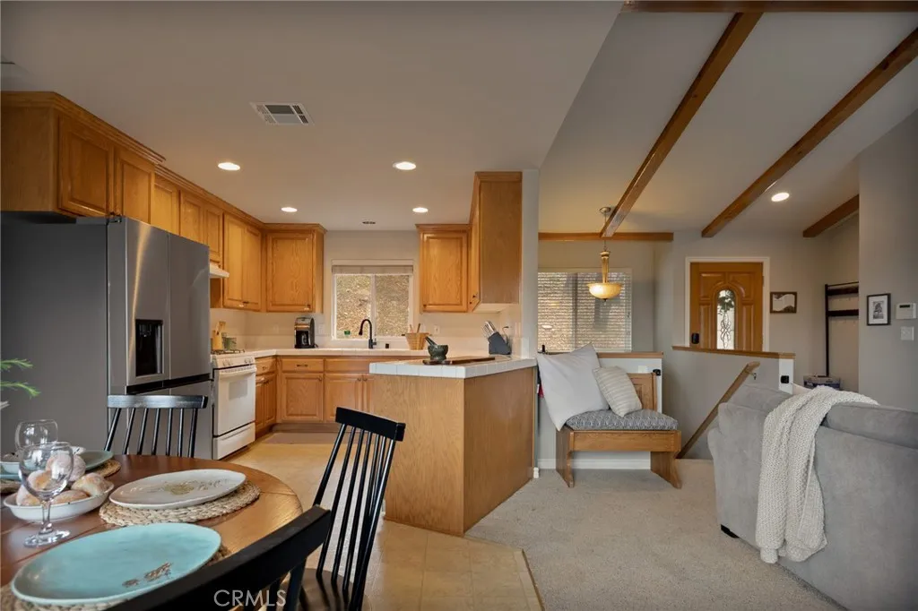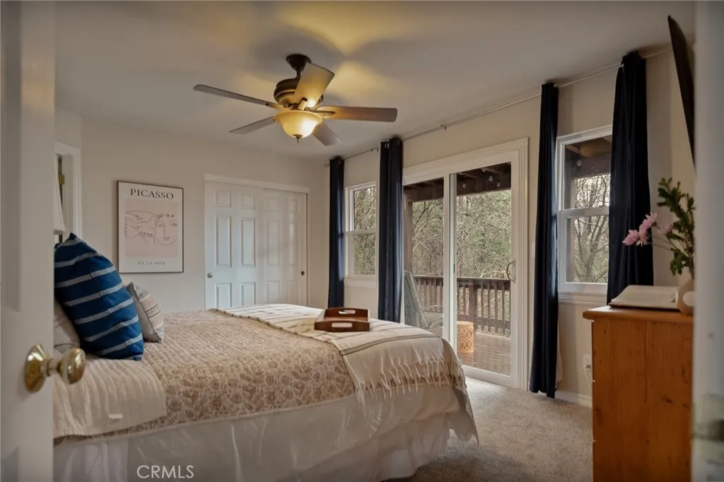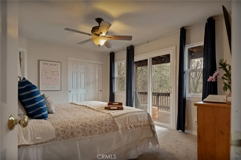 Looking for privacy? Tucked into a peaceful, secluded setting with sweeping forest and ridge-line views, this lake rights home has something for everyone. A private road leads exclusively to this level-entry property, complete with an attached single-car garage and ample easy, level parking. Love to hike? Leave from your front door! Inside, the light-filled main living level features vaulted ceilings, an open floor plan, and a welcoming living room with a gas log fireplace and half bath. A sliding door opens to a Trex deck — the perfect place to relax and take in the serene mountain surroundings and desert views. The kitchen flows into an inviting dining area with direct access to the attached garage. Downstairs, you’ll find a versatile open den with slider access to the lower deck, a full bathroom, laundry room, and three bedrooms. The generous primary suite includes its own deck access, ensuite bath with jetted tub, and walk-in closet. Built in 2005, this newer construction home is designed for low maintenance and also offers a large buildup area for additional storage. Enjoy the best of both worlds — a hidden, tranquil mountain escape that still offers convenient access to nearby shops, dining, medical services, and is within easy reach of Lake Arrowhead's private beaches and boat launch. Come live your lake house dreams!