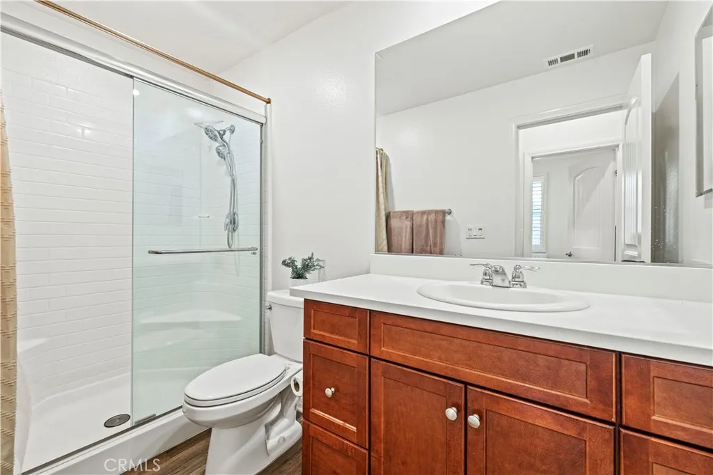 Click on virtual tour to see video! Welcome to this charming single-family home located in the prestigious West Creek Community of Valencia. This beautifully maintained residence boasts 4 bedrooms and 3 bathrooms, featuring luxurious details throughout. Upon entering, you’ll be greeted by an open floor plan with abundant natural light, creating an inviting atmosphere. The gourmet kitchen is a chef’s delight, complete with a large center island, granite countertops, custom cabinetry with ample storage, and stainless steel appliances. Water softener for the whole house and separate one for the kitchen. Plantation shutters throughout the whole house. Upgrades include double-pane windows throughout. The first floor includes a convenient bedroom with a full bath, perfect for guests. Vinyl flooring is present on the first floor and there is carpet on the stairs and 2nd floor. Recessed lighting enhances the first floor, and additional recessed lighting has been recently added to all upstairs bedrooms. All bathrooms feature quartz countertops, and each bedroom offers a walk-in closet. The primary bedroom is a true retreat, with an extra-large walk-in closet and an en-suite bathroom that includes dual vanities. This home has leased solar panels, resulting in minimal electrical bills. The spacious 2-car attached garage has been upgraded with an electric car connection. The backyard is perfect for entertaining, featuring a California living room with seamless indoor-outdoor flow and a relaxed modern aesthetic. Backyard has been upgraded with turf. Located in the highly sought-after West Creek Avanti neighborhood, this home is located within walking distance of award-winning schools (West Creek Elementary, Rio Norte Junior High, Valencia High). The community offers 3 heated pools and spas, a clubhouse, bike path, brand new playground, basketball court, BBQ area, and nearby shopping. Low HOA! Don’t miss the opportunity to make this your new home sweet home!