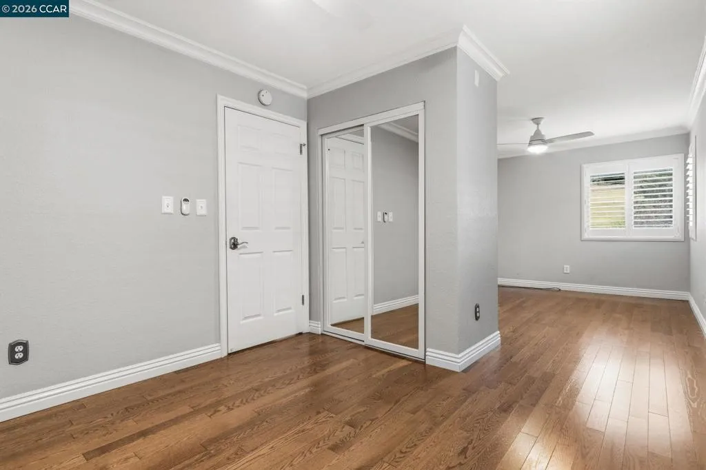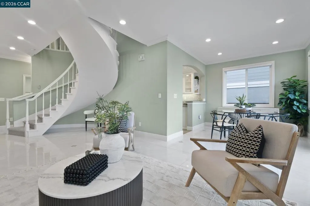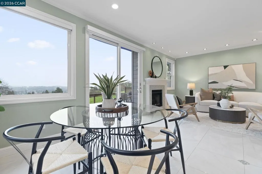 Perched atop Fountain Springs Circle, is a serene hillside retreat with breathtaking VIEWS of Mt. Diablo & the surrounding valley. Backing to open space with no rear or front neighbors, this home offers exceptional privacy & tranquility. A private courtyard welcomes you with charming brick pathways, while expansive wood decking creates an ideal setting for entertaining, relaxing & enjoying stunning vistas & starry nights. The open floor plan is filled with light & sophistication, featuring high ceilings, a floating staircase, walls of glass & seamless indoor-outdoor living. Stunning VIEWS from most rooms! Hardwood floors, designer porcelain tile & quartzite finishes elevate the space. Remodeled kitchen shines with SS appliances, quality cabinetry, designer backsplash, quartzite slabs & wine cooler. Recent upgrades include remodeled bathrooms, custom window coverings, dual-pane windows, upgraded lighting, ceiling fans & a retractable patio awning. Two cozy fireplaces in the living & family rooms. The primary suite offers a private balcony, spa-like bath & walk-in closet. Additional bedrooms provide flexibility, including a spacious suite that can be easily reconfigured. This exceptional home blends comfort, elegance, and natural beauty! Garage w/epoxy floors and custom cabinets.