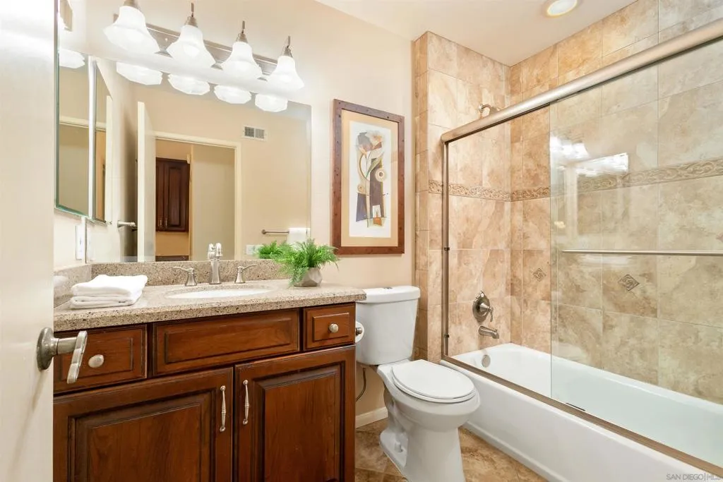 Seller will entertain offers between $899,000--$925,000. Tierrasante Treasure. Beautiful large 1,989 sq. ft. Townhome has 4 bedrooms upstairs; 4th bedroom has closets but often used as a flex room. Direct 2 car-garage access; in unit laundry; Dual pane windows. This home is situated as an "inner unit" not on freeway or main road. Plantation shutters throughout. Home has air-conditioning. All electrical can lights changed to LED. Moen water shut off installed in garage. Garage recently updated. Newer roof installed in 2025. Updated within the last few years with LVP flooring on entry level and carpet upstairs. Newer Kitchen & appliances. Newer bathrooms. Villa Monterey is well located off freeway 15 with lush green open spaces, 3 pools & 2 Spas, tennis courts, (RV parking with additional fee). Tierrasante often called T-town by the locals offers access to Trails, Rec center, multiple parks, shops and schools