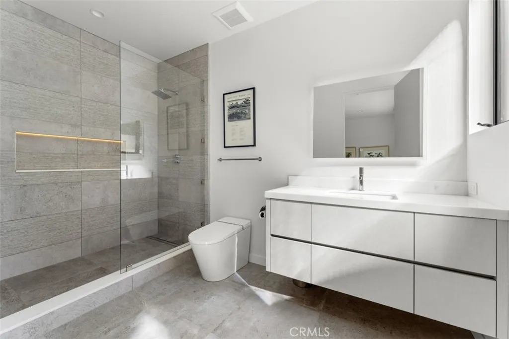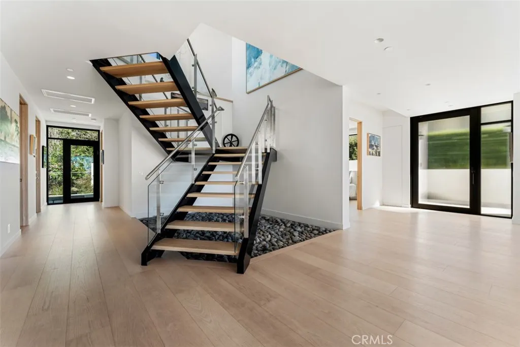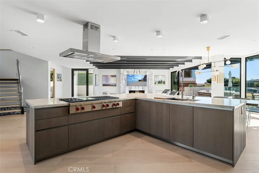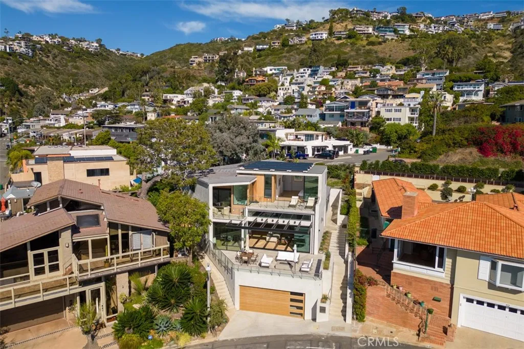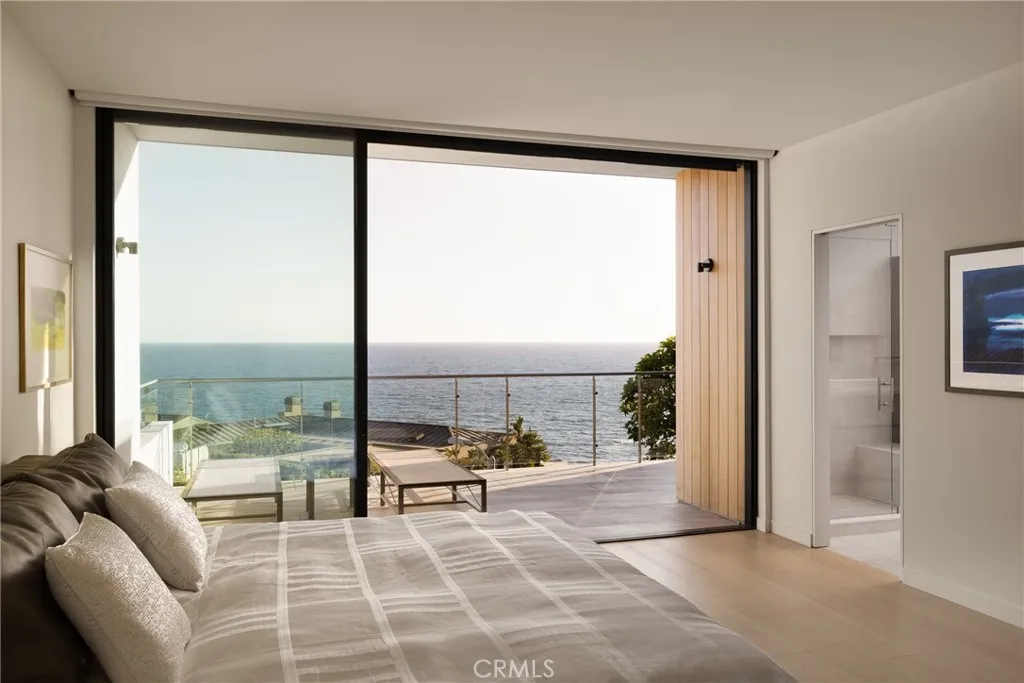 See and hear the waves from this stunning modern architectural home on the ocean side of the Pacific Coast Highway (completed in 2023), which epitomizes coastal elegance and ultimate beach living behind the secured gates of the exclusive Lagunita community in Laguna Beach. Just steps down a private road and private stairway to beautiful Victoria Beach, this 4 bed, 5 bath 3,596 SF residence is thoughtfully designed to maximize natural light and to take advantage of the breathtaking Catalina Island views and sunsets.. Neutral and warm tones used throughout this home accentuate the open floor plan where the kitchen, formal living, and dining areas all lead to an expansive front deck with seating and firepit facing the spectacular ocean views. Great for entertaining, the chef's kitchen features Taj Mahal quartzite countertops, Eggersmann (German) custom cabinetry, and state-of-the-art SubZero/Wolf appliances - including coffee maker, 48" refrigerator, six-burner 48" range, wine fridge, steam and conventional ovens. The main level also includes two guest bedrooms with ensuite baths, a back deck with spa & sauna where you can enjoy your favorite music, entry to the backyard, and an off the kitchen outdoor patio with built-in Wolf BBQ and refrigerator. Up the floating staircase are soaring architectural ceilings and windows that flood the whole home with natural light. Upstairs includes the master bedroom which offers its own private balcony with panoramic 180-degree ocean views, a spacious closet, as well as a genuinely spa-like bathroom with steam shower & soaking tub (both with ocean views) perfect for relaxing and enjoying the evening sunsets. Down the hall is a guest bedroom with an ensuite bath and its own private balcony with lovely ocean views. A laundry room completes the upstairs plan. Other home features include premium wide plank French oak flooring throughout, floor to ceiling sliding glass doors with automatic interior and exterior shades, and a Control4 smart home system that controls lighting, shades, surround sound for the 83-inch LG OLED TV, dual-zone AC/heating, doorbell/camera, and throughout the home speakers. Enjoy this minimalist contemporary art-filled home that is literally steps from world famous Victoria beach and mere minutes from Montage Resort. Come and enjoy Laguna Beach, its art galleries and panoply of restaurants and shops.