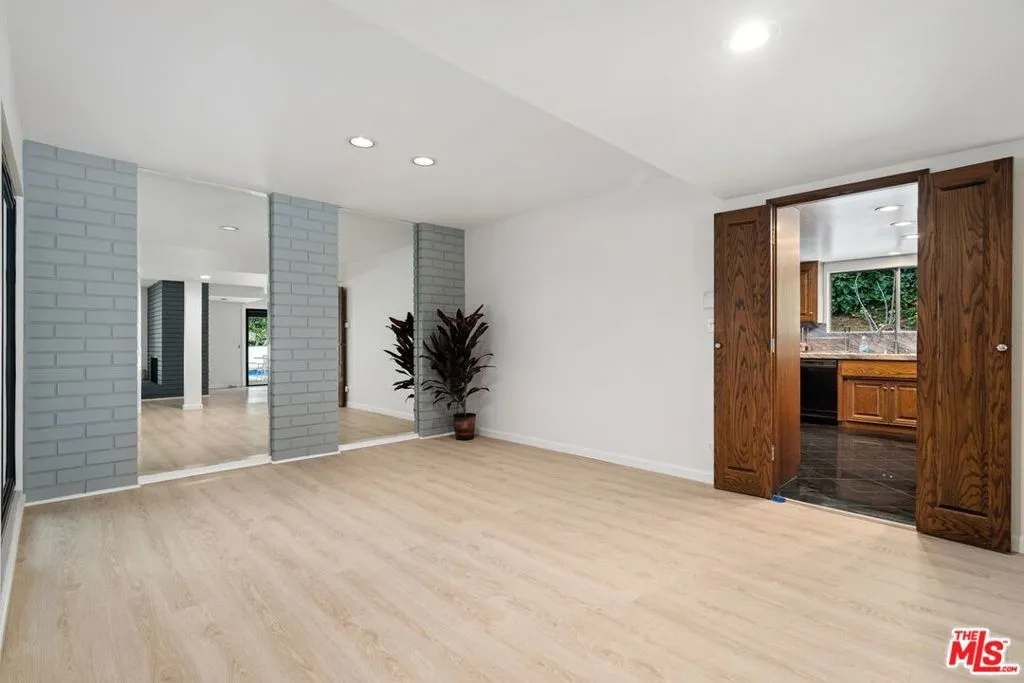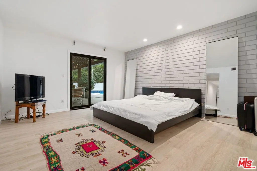 An exceptional offering of refined mid-century living with an atmosphere that is both sophisticated and effortlessly relaxed. Truly a rare and special residence. Privately situated on a quiet cul-de-sac, this impeccably maintained single-level home delivers the ideal balance of seclusion and immediate access to the finest dining, shopping, and cultural amenities Los Angeles has to offer. Designed for seamless indoor-outdoor living, the open floor plan unfolds around a striking pool, with all major rooms oriented to capture the serene setting and create a fluid connection to the outdoors an entertainer's dream with complete privacy at the pool. Rich hardwood floors run throughout, enhancing the home's clean architectural lines. The elegant primary suite serves as a tranquil retreat, featuring a luxurious bath and a huge walk-in closet. Two additional generously scaled bedrooms complete the thoughtfully designed layout. A rare opportunity to experience Southern California living at its most polished and timeless.