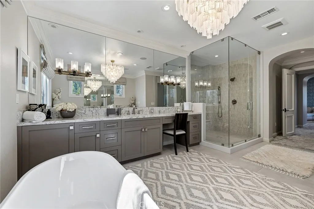 Privately positioned at the end of a quiet cul-de-sac in The Oaks of Calabasas, 3850 Prado De Las Uvas offers over half an acre of resort-style living with approximately 7030 square feet, 5 ensuite bedrooms - 1 down and 4 up, and a flexible modern floor plan seamlessly designed for ease and flow. This Mediterranean estate features warm wood floors, beam ceilings, a dramatic great room with fireplace, and a perfectly located chef’s kitchen equipped with premium stainless appliances, double ovens, oversized island, and custom cabinetry. Downstairs the well designed flow is built around access to the desired and vast multiple outdoor spaces. Perfect for large gatherings or intimate nights. The upstairs primary suite complete with separate sitting area, delivers privacy and scale with its own fireplace, covered veranda, and remodeled spa-inspired bath with soaking tub and oversized shower. Upstairs has the sizable laundry room, office/ theater space, and gym overlooking the backyard. Designed for entertaining, the oversized backyard showcases a sparkling pool, waterfall, and spa, built-in BBQ with seating, covered patio lounge with fans and heaters, full-size sport court, and mature landscaping for exceptional privacy. Residents enjoy exclusive access to The Oaks’ 24-hour guard-gated security, clubhouse, tennis and pickleball courts, fitness center, basketball court, and resort-style pool. Located just minutes from Malibu The Commons at Calabasas and within the award-winning Las Virgenes School District. Luxury, privacy, and location — all in one of Calabasas’ most sought-after communities. Welcome to Guard-Gated Luxury in The Oaks of Calabasas.