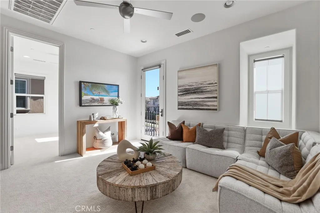 Modern design, privacy, and seamless indoor-outdoor living come together in this beautifully upgraded home in Baker Ranch. Built in 2018 by Toll Brothers, this Mendocino model stands out with its premium lot placement—no rear neighbors—offering rare space and seclusion. Thoughtfully refined and completely turnkey, the home pairs clean architectural lines with a backyard designed for both relaxed evenings and effortless entertaining. Wide-plank Provenza wood flooring, 9+ foot ceilings, recessed lighting, and expansive windows set the tone from the moment you enter. The open-concept first floor is filled with natural light and designed for everyday living. A main-level guest bedroom and full bath offer flexibility for visitors, extended family, or a private office. The kitchen is both striking and functional, anchored by an oversized island with pendant lighting and bar seating. Floor-to-ceiling cabinetry creates a streamlined built-in look, complemented by quartz countertops, full tile backsplash, and premium appliances including a 42” built-in refrigerator, double ovens, gas cooktop, dishwasher, and microwave. Energy-efficient features include a tankless water heater and ENERGY STAR? double-pane windows and appliances. Expansive sliding glass doors create a natural connection between the great room and covered patio. The professionally landscaped backyard delivers exceptional privacy with no homes behind, featuring stone and tile hardscaping, a built-in BBQ station, fire pit with integrated seating, and an extended California room—ideal for gathering year-round. Upstairs, a spacious loft provides an additional retreat perfect for a media room, workspace, or play area. The primary suite offers coffered ceilings, recessed lighting with an en-suite bath. The ensuite bath features dual vanities, a large walk-in shower, and a generous walk-in closet. Secondary bedrooms include upgraded carpet and padding for added comfort. Residents enjoy five pools, a swim club, 11 parks, sports courts, and miles of hiking and biking trails. With top-tier schools nearby and designer upgrades throughout, this home on one of the community’s more private lots delivers style, comfort, and elevated living.