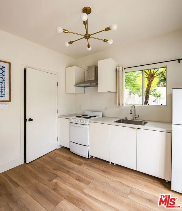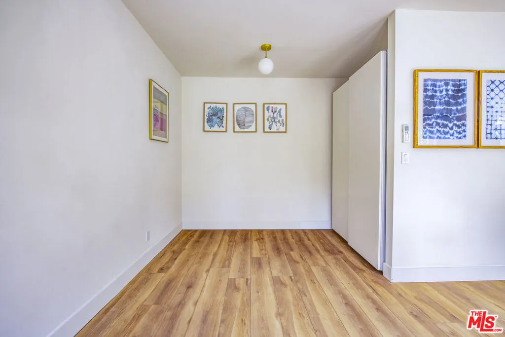 Tucked at the rear of a gated lot in the heart of the Melrose District, this beautifully finished 350 sq. ft. ADU offers a private retreat surrounded by lush greenery and mature hedging. A charming garden walkway leads to double French doors that open into a bright, open-concept living space filled with natural light.Inside, wide-plank wood-style flooring, high ceilings, modern brass light fixtures, and oversized windows create an airy, sophisticated feel. The thoughtfully designed kitchenette features clean-lined cabinetry, stainless vent hood, full-size refrigerator, range, and ample counter space. The spacious living area flows seamlessly to the outdoor patio and shared yard, creating an effortless indoor-outdoor lifestyle.The bathroom is finished with white subway tile and hex tile flooring, and the unit includes central heat and air conditioning along with an in-unit stacked washer and dryer for added convenience.Offered unfurnished with a minimum one-year lease. Owner covers water, sewer, and gardener; tenant responsible for remaining utilities. Small dogs under 20 lbs may be considered with additional deposit. Street parking only.
