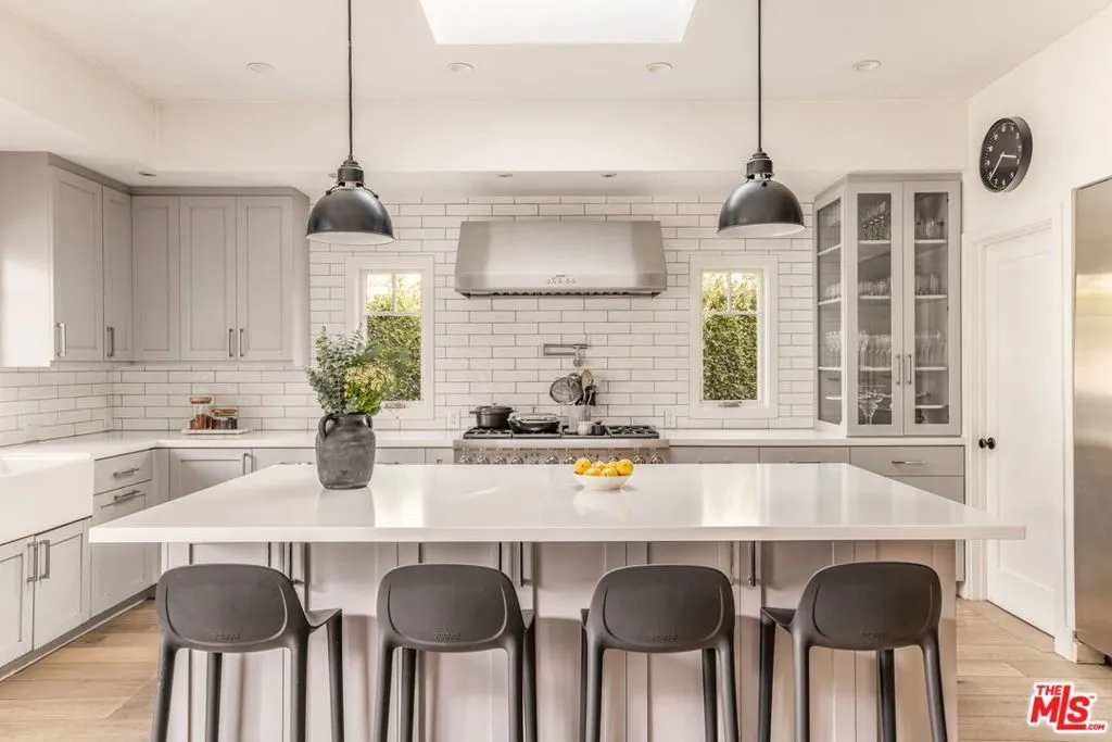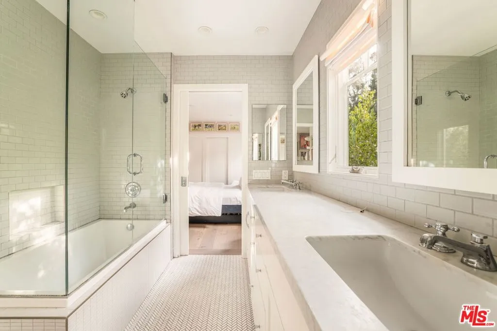 Prime Beverlywood single-story Traditional with 4 bedrooms and 2.5 baths on a quiet, pedestrian-friendly street. Updated and move-in ready, this light-filled home blends timeless character with modern functionality. Interiors feature wide-plank hardwood floors, abundant natural light, and a classic fireplace. The open kitchen and family room include a large center island, professional range with a statement hood, stainless steel appliances, farmhouse sink, skylight, and French doors that open to a private patio, ideal for entertaining or al fresco dining. The spacious primary suite offers direct patio access and a beautifully remodeled spa-like bath. Secondary bedrooms are generously sized, plus a dedicated den/office and separate laundry room. Additional highlights include central AC/heat, two-car driveway parking, and a private backyard surrounded by mature greenery. Ideally located near shopping and dining.