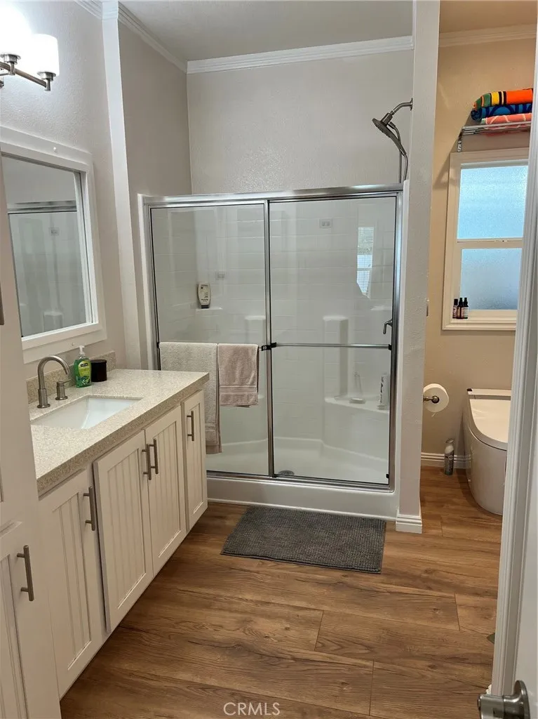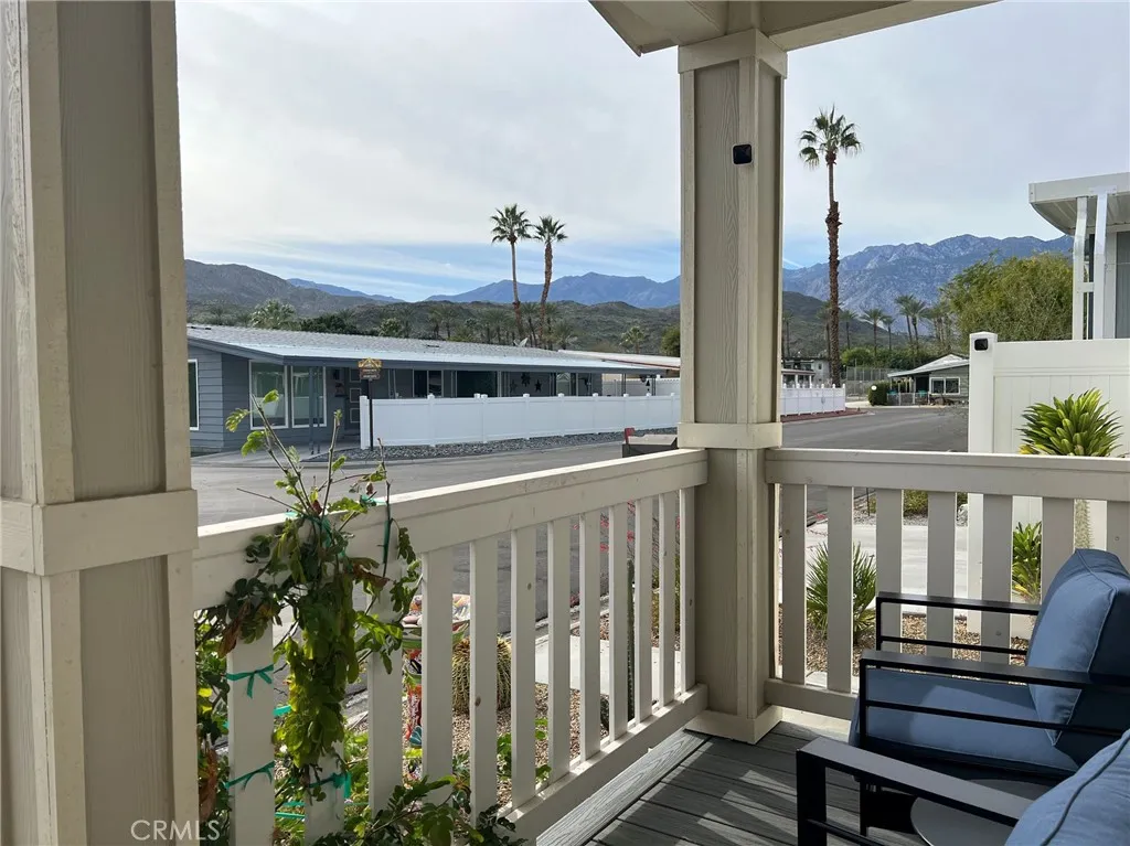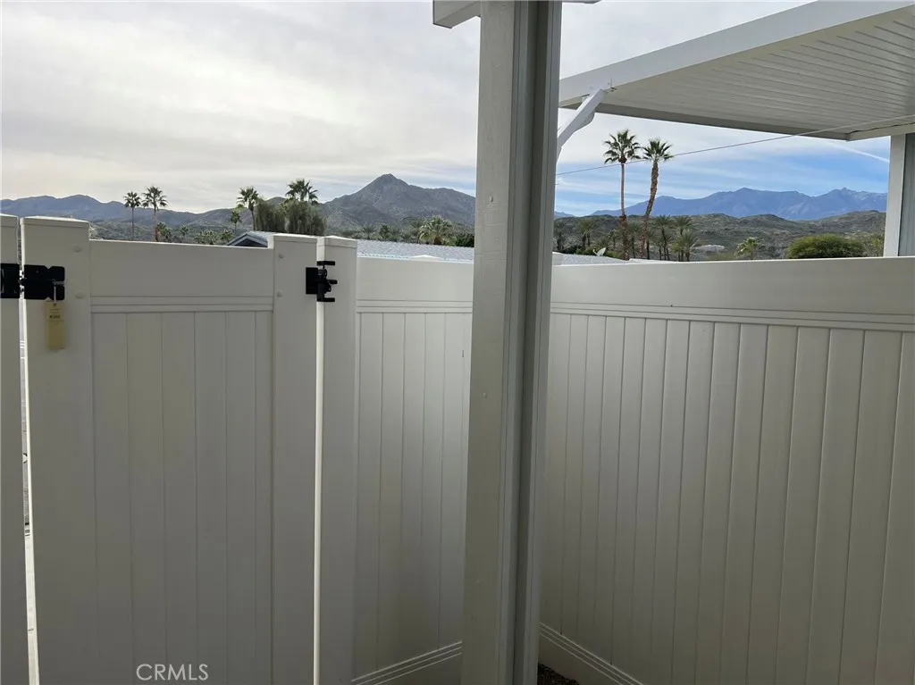 This stunning 3BR/2BA Silvercrest manufactured home is less than 3 years old, on fee simple land you own, and has one of the lowest HOA fees in the desert at $355/mo. which includes water and garbage. Located in El Dorado Palms Estates, a 55+ community, the property sits across the street from one of the community pools and has lovely southwest views of the mountains. Inside you’ll find 9 ft ceilings throughout, clerestory windows that flood the home with light, energy efficient HVAC system, and increased insulation in 6” exterior walls. Dream kitchen with huge Corian island opens onto a great room living/dining concept with tray ceiling. Large primary bedroom suite with glass door to a side patio. Electric bidet toilet in primary bathroom. Two additional bedrooms for guests, office space, or craft room. Freshly painted inside. Large wide carport with 30 amp charging plug for electric vehicle. 12x12 storage shed. Small rear fenced garden for your fur babies. LG front load washer/dryer set on pedestals. New Honeywell smart thermostat. Whole house 3 stage water filtration. New garden irrigation and plants. Clubhouse with on-site management, auditorium, and fitness center. Two tennis/pickle ball courts also just across the street. Target, Trader Joe’s, Starbucks, and more just ½ mile away. This is a must-see property for the seasonal buyer as well as those looking to retire in the desert – priced competitively with most condos yet without the shared walls or high HOA fees.
