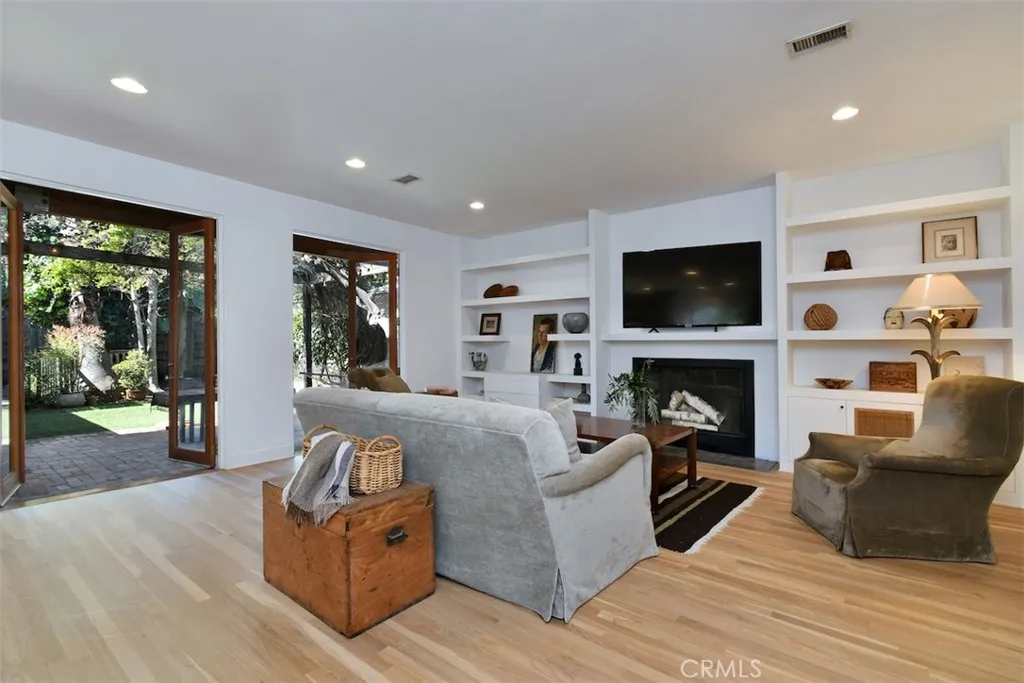 Artsy Laurel Canyon vibes in coveted Colfax Meadows. Excellent school district, restaurants, cafes and parks. This custom two-story home is filled with natural light, lush green views, and exceptional privacy. High ceilings and wood floors are some of the highlights. A calm bright aesthetic flows from the open kitchen to the expansive great room with fireplace, built-ins, and walls of glass opening to a vine pergola patio and separate pool area—ideal for entertaining. Formal dining with French doors leads to the wisteria drenched private patio perfect for entertainment or children's play area. Next to kitchen is a butler’s pantry, powder room, and direct-access two-car garage with storage. Also downstairs are a formal living room with a fireplace and built-ins, and a private bedroom suite with full bath, perfect for guests or office. Upstairs features three bedrooms and a sun-filled sitting room. The primary suite offers a fireplace, large sitting area, walk-in closet, and spa-like bath with soaking tub, double sinks, and separate shower. The two additional bedrooms share a full bathroom. Upstairs landing can be used as mini library or extra workspace. Corner lot for extra privacy and ample street parking for guests. Custom built and reimagined by architect Richard Olander. Moments to Tujunga Village, Farmers Market, Aroma Café, Zoned Carpenter School. A home you shouldn't miss... its special!