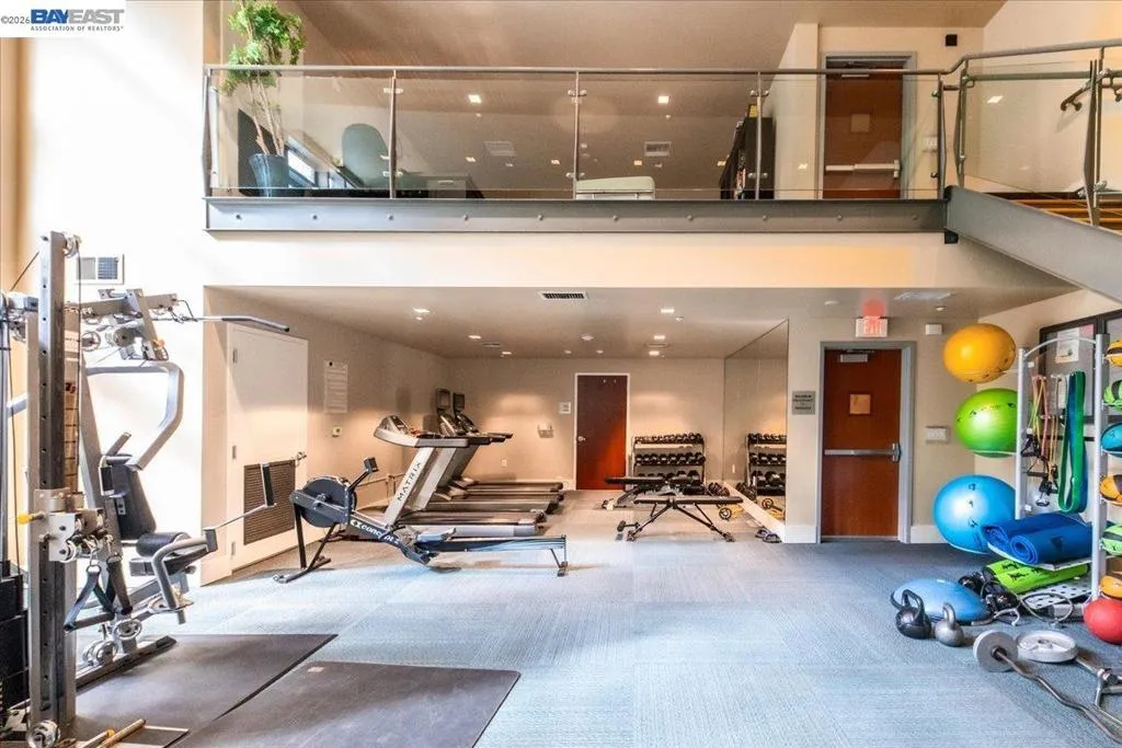 TRULY a Live/Work loft at Market Square in Old Oakland offering a unique blend of residential comfort and business flexibility. Floor-to-ceiling windows provide abundant natural light, and a private double door street entrance is ideal for a storefront or any workspace of your dreams. The main level features a full kitchen with stainless steel appliances, full large spacious bathroom, and open living area. Brand new HVAC System and microwave. A spiral staircase leads to the loft level, perfect for a bedroom, office, or studio with walk-in closet, an additional closet with stackable washer/dryer hookups, and rear access leading to the rooftop deck. The rooftop will be perfect timing for BBQ'ing and relaxing on the lounges after work. Located just one block from Swan's Market, Sana'a Cafe, Blue Bottle Coffee, and the historic Ratto's International Market & Deli. The popular Friday morning farmers market is a wonderful way to kick off the weekend. Community amenities include gated garage parking (1 space) with its own EV charger, fitness center, sauna, steam room, business center, conference room, outside zen bamboo courtyard, and rooftop deck with SF Bay views. Close to Jack London Square, Lake Merritt, BART, and access to most freeways. Walk Score 98. Must See!