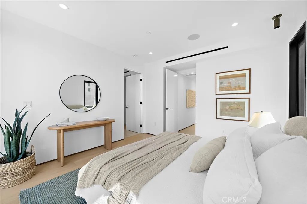 Brand new 2026 construction on one of the most desirable no pass-through streets in Corona del Mar’s coveted Flower Streets. Just moments from the beach and within walking distance to Begonia Park, shops, and restaurants in the Village, this front residence offers the ideal blend of privacy, walkability, and refined coastal living. Designed by acclaimed architect Mark Teale, built by AmPro Construction with interiors by KFR Design, the home offers approximately 1,769 square feet of thoughtfully designed living space with elevated finishes throughout. Inside, walls of glass and sliding doors create a seamless connection between indoor and outdoor spaces while filling the home with natural light. Solid wood flooring runs throughout, complementing the open-concept layout and clean architectural lines. The living area features beautiful designer upgrades, including a striking wine wall that serves as a focal point. The chef’s kitchen is beautifully appointed with a 48-inch Thermador Professional range, column refrigerator and freezer, built-in microwave drawer, wine refrigerator,Custom European cabinetry, natural stone countertops, and high-end designer finishes continue throughout the kitchen and all bathrooms, reflecting quality craftsmanship and thoughtful attention to detail. All bedrooms are en-suite, offering privacy and comfort throughout. The second level features the primary suite along with an additional bedroom suite. The primary retreat feels like a spa-inspired sanctuary, complete with a freestanding soaking tub, Kohler Purist brushed bronze fixtures, and carefully selected stone finishes. The third level includes another private bedroom suite that opens directly to the rooftop deck, creating a seamless indoor-outdoor experience and an exceptional space for entertaining or relaxing in the coastal breeze. Outdoor living is equally impressive. The fully landscaped front patio one of the larger front patios for new construction in the Flower Streets is finished with porcelain tile, a built-in BBQ, firepit, and beautiful landscaping. Combined with the generous rooftop deck, the home offers multiple outdoor living areas rarely found in new construction at this size. A rare opportunity to own a brand-new, design-driven residence in one of Corona del Mar’s most sought-after coastal neighborhoods.