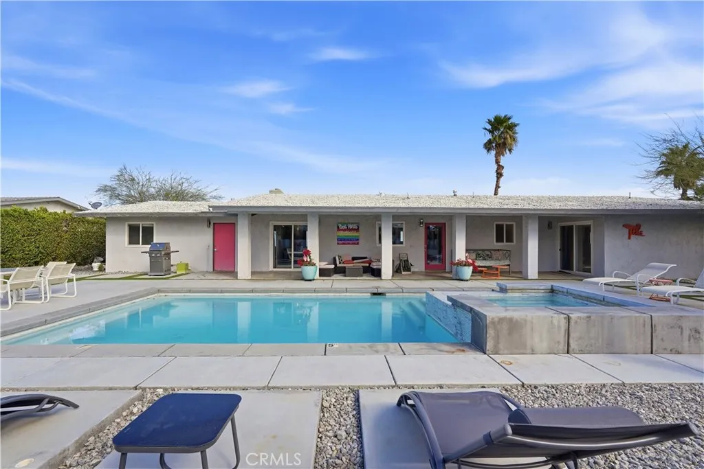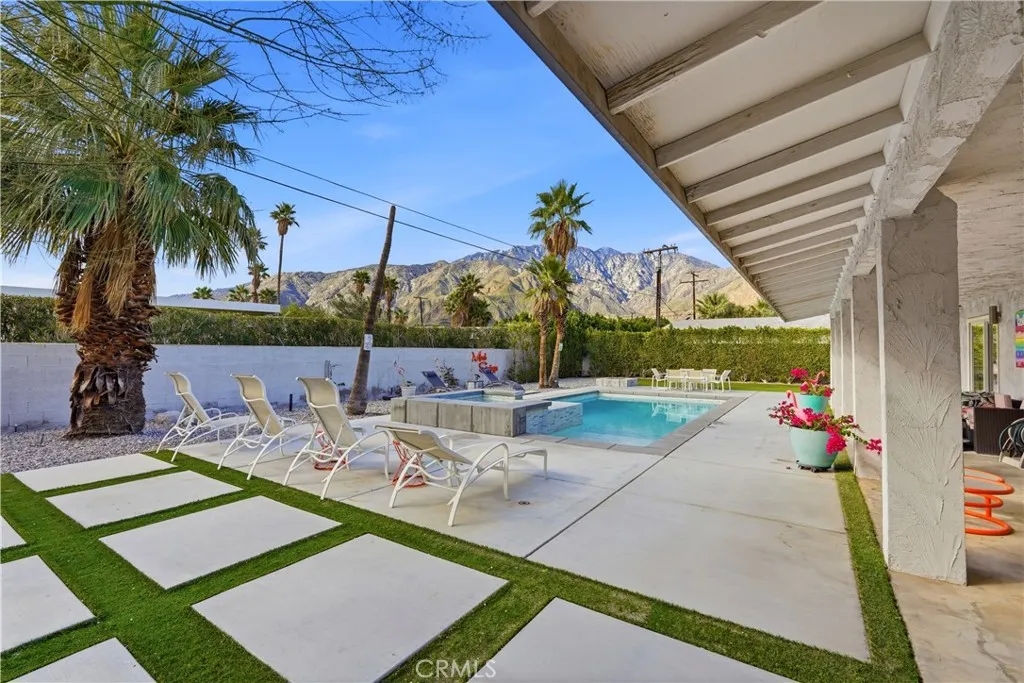 Short Term Rental Eligible!!!!Located in one of the most desirable neighborhoods in Palm Springs, this beautifully updated 3-bedroom, 2-bathroom mid-century modern home offers 1,844 square feet of iconic desert living. Designed with classic architectural lines, soaring ceilings, clerestory windows, and expansive sliding glass doors, the home is filled with natural light and seamlessly blends indoor and outdoor spaces. The open-concept living and dining areas create the perfect setting for both everyday comfort and entertaining. The modernized kitchen features quartz countertops, stainless steel appliances, and sleek cabinetry, offering a stylish and functional space for cooking and hosting. The spacious primary suite includes private access to the pool and backyard, while two additional bedrooms provide flexibility for guests, office space, or creative use. Step outside to your own private resort-style backyard featuring a sparkling pool, lounge and dining areas, fire pit, and breathtaking mountain views — ideal for relaxing, entertaining, and enjoying the Palm Springs lifestyle year-round. Just minutes from downtown Palm Springs, you’ll enjoy easy access to world-class dining, shopping, nightlife, golf, and entertainment, while still living in a quiet, established neighborhood. A rare opportunity to own a true Palm Springs architectural classic that delivers lifestyle, location, and long-term value. Perfect as a primary residence, second home, or investment property.