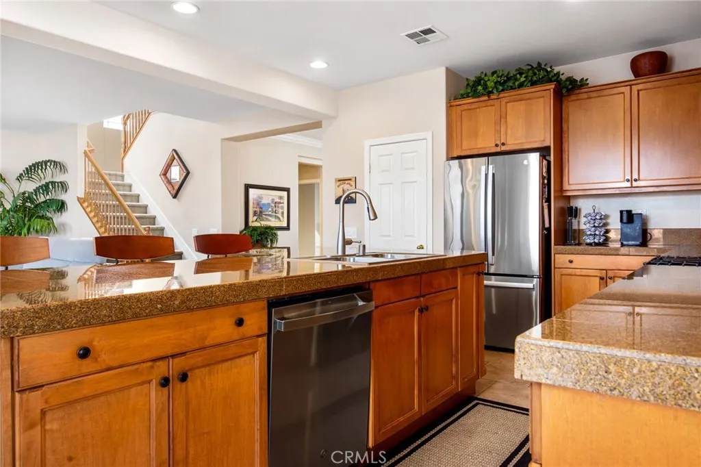 For buyers who won’t settle, this 4-bedroom, 3-bathroom home in Crowne Hill delivers. Immaculately maintained by original owners and move-in ready! Big-ticket improvements, including a new HVAC system, fresh exterior paint, new vinyl fencing, and all new stainless steel kitchen appliances, have already been completed, reducing future expenses and offering peace of mind, modern comfort, and the lifestyle today’s buyers expect. The open-concept kitchen features granite-tile counters and dining area with wine nook. The flexible layout includes a downstairs bedroom and adjacent full bathroom and 3-car tandem garage. The upstairs owner's suite has dual walk-in closets and a soaking tub with separate shower and expansive views of wine country. Two additional bedrooms, a spacious tech loft, and shared bathroom complete the upper level. The low-maintenance backyard captures views toward Temecula wine country, creating a peaceful outdoor setting without heavy upkeep. A well-cared-for home in a prime location across from the neighborhood park and within walking distance to award-winning Crowne Hill elementary school - make it your new home today!