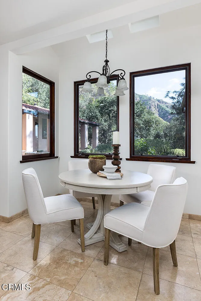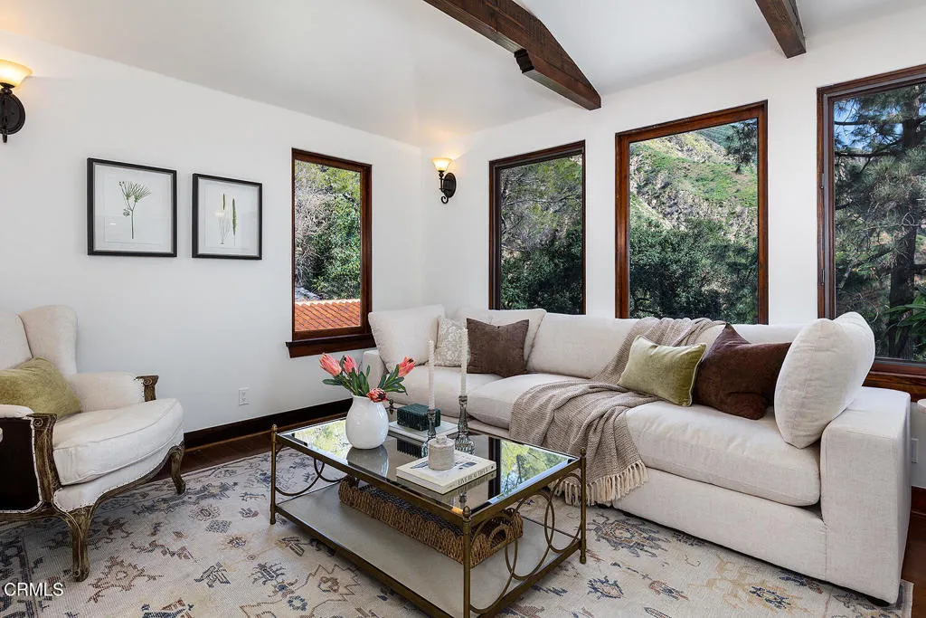 Nestled in the foothills of Altadena, this gated California Mediterranean Estate is a masterwork of architectural design and premium craftsmanship. Set on an expansive, private lot, the property was built in 2009 and offers a seamless connection to nature with dramatic panoramas spanning mountains, treetops, and lush green surroundings. The residence is defined by exceptional finishes, including recurring arches, open wood-beamed and trussed ceilings, and custom wrought-iron work. The dramatic two story entry with grand staircase and wood paneled ceiling is adjacent to the wood-paneled library with fireplace. The formal living room boasts travertine floors, rich wood beams, stone fireplace mantle, picturesque windows and sliding doors to the covered patio. The formal dining room features seamless hand-plastered barrel ceilings and sliding glass doors. The heart of the home is the gourmet kitchen with a large island and breakfast nook that flows effortlessly to outdoor verandas and a built-in barbecue. Steps down to a comfortable family room with travertine floors and two sets of sliding doors accessing the backyard and side yard to a basketball court. The main residence features five bedroom suites, highlighted by a secluded primary retreat occupying its own level to maximize the breathtaking views, balcony, fireplace and sitting room. The upper level consists of a dedicated secondary wing featuring its own den. There are two laundry rooms on each level for maximum convenience. Designed for grand-scale entertaining, the grounds feature covered verandas, lush landscaping, and a vast lower-level yard for all recreational events. A full guest house provides a private sanctuary for visitors, complete with vaulted wood ceilings, a fireplace, a kitchenette, and a full bath. Two separate garages offer ample storage to complete this unparalleled canyon-side estate. This property is close to award winning restaurants like Betsy, Prime Pizza, Miya and more!