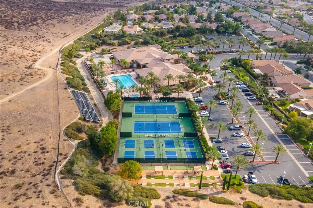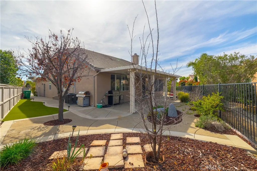 Welcome to 29427 Bentcreek Ct, located in the highly desirable 55+ guard-gated Oasis community in Menifee. This beautifully maintained Curaçao model offers 2,085 sq ft of thoughtfully designed single-story living with 2 bedrooms, 2.5 bathrooms, and a versatile den/office with double doors. The spacious layout features formal living and dining areas, along with a comfortable family room with fireplace that opens to the kitchen, creating an ideal setting for both everyday living and entertaining. The upgraded kitchen includes a large center island with sink, ample cabinetry, under-cabinet lighting, and generous counter space. A private hallway leads to the guest suite with its own full en-suite bathroom, providing separation and privacy for visitors. The primary suite is generously sized and features dual sinks, a soaking tub, walk-in shower, and a spacious walk-in closet. A convenient indoor laundry room with sink and cabinetry adds everyday functionality. Situated on one of the larger lots in the community, the backyard showcases custom stamped concrete that wraps around the home, mature landscaping with fruit trees, and covered patio areas ideal for relaxing or entertaining outdoors. Living in The Oasis means enjoying resort-style amenities within a beautifully maintained 24-hour guard-gated setting. Residents have access to a 22,500 sq ft clubhouse featuring a banquet room, fitness center, billiards, library, and numerous social clubs and activities, along with a pool, spa, tennis and pickleball courts, and scenic walking paths. The community is adjacent to Menifee Lakes Country Club Golf Course and conveniently located near shopping, dining, and Temecula Wine Country. If you are looking for privacy, space, dual en-suite bedrooms, and an active lifestyle in one of Menifee’s premier 55+ communities, this home delivers.