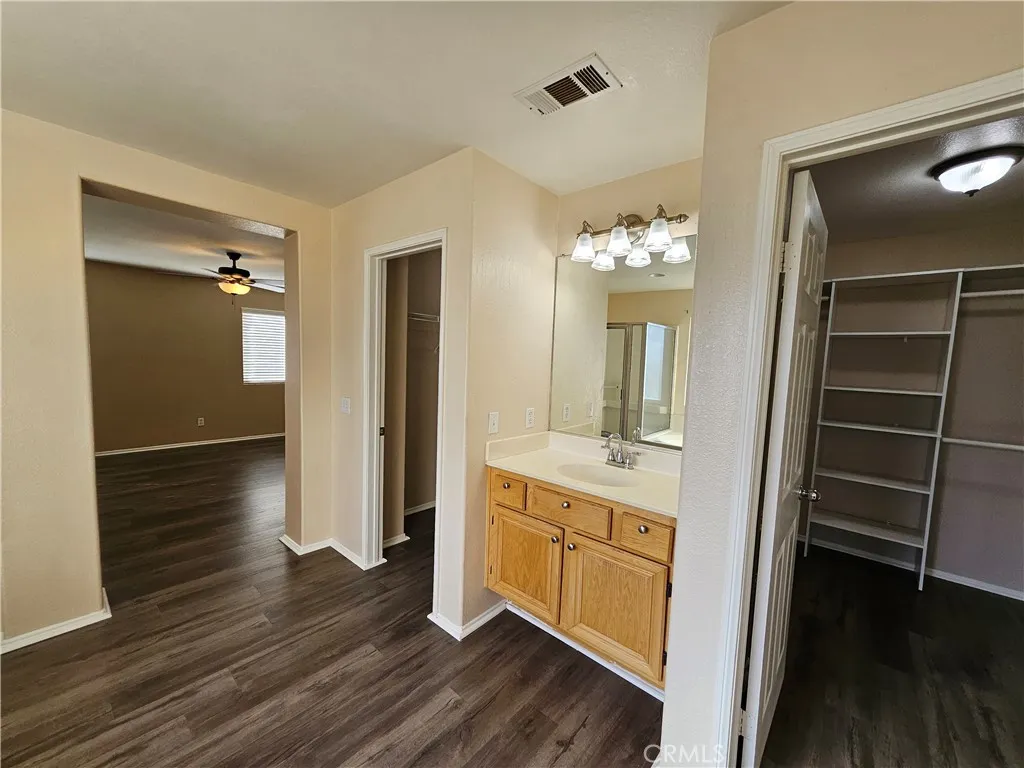 This stunning two-story residence is nestled in the Eagle Glen Golf community, boasting 4 bedrooms, 3 full bathrooms, a large office, an upstairs loft, and a 2-car garage. The main floor features one bedroom, a full bathroom, and a vast formal dining and living room combination. The main floor also hosts a sizable office. Flooring is a mix of tile and laminate wood, complemented by crown moldings and ceiling fans. The chef's kitchen is equipped with exquisite granite countertops, a large island with a white quartz countertop, and stainless steel appliances. The upstairs includes a spacious loft. The airy and bright primary suite offers a large bedroom, an expansive walk-in closet, and a generous bathroom with a roman tub, a walk-in shower, and double vanity sinks. Additionally, there are two well-proportioned bedrooms and a full bathroom upstairs. The laundry room is conveniently situated on the main floor adjacent to the kitchen. The backyard, with its ample size and covered patio, is ideal for family gatherings. The home is in close proximity to Wilson Elementary School, tennis courts, parks, golf courses, and shopping areas, with easy access to the freeway.