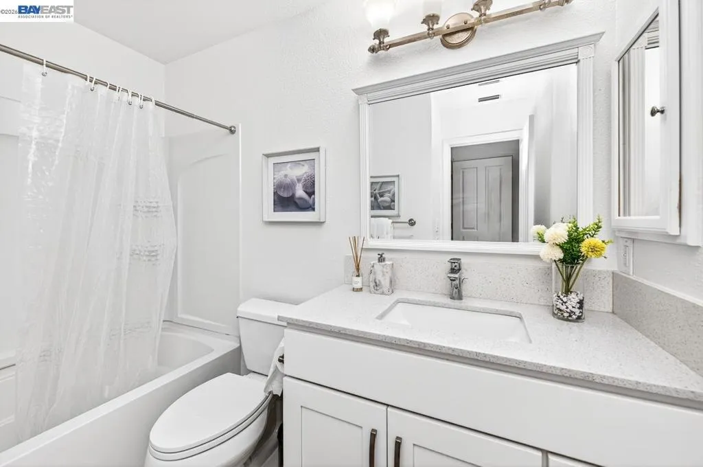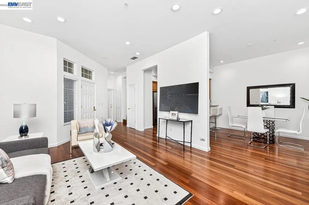 Welcome to this stunning, well-maintained 2-bedroom, 2.5-bathroom townhome located in the highly sought-after Sienna Community of Pleasanton. Filled with abundant natural light, this modern residence features stylish LED lighting throughout and fresh interior paint, creating a bright and inviting atmosphere. The first floor offers a desirable open-concept layout, seamlessly connecting the living room, dining area, and kitchen—perfect for both everyday living and entertaining. The upgraded kitchen showcases stainless steel appliances, sleek finishes, and a convenient breakfast bar ideal for casual dining. The dining area opens to a charming private backyard through a sliding glass door, providing the perfect setting for outdoor relaxation and gatherings. Upstairs, the spacious primary suite features a vaulted ceiling and a private en-suite bathroom. An additional generously sized bedroom and a second full bathroom complete the upper level. Additional highlights include a side-by-side two-car garage for added convenience. New HVAC! Residents of the Sienna Community enjoy exceptional amenities, including a pool, spa, and picnic areas—all with a low HOA fee. Located within the award-winning Pleasanton school district and ideally situated near BART, I-580, I-680, and shopping.