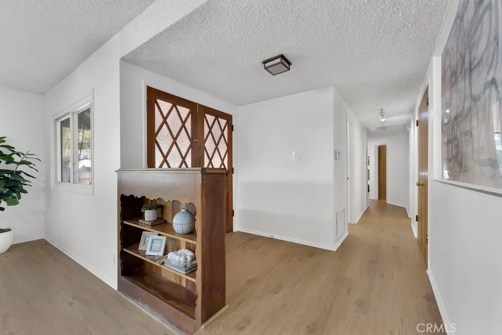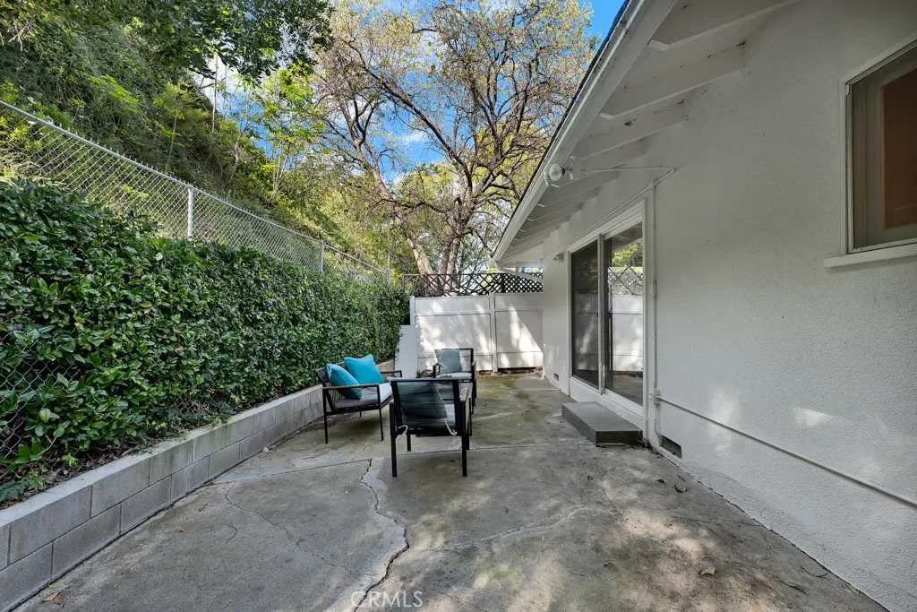 Located south of the Boulevard at the end of a quiet cul-de-sac in desirable Woodland Hills and within the boundaries of highly-rated and award-winning schools including Calabash Charter Academy, Hale Charter Academy, and El Camino Real Charter High School, this single-story California ranch home offers 3 bedrooms, 2 bathrooms, and 1,678 square feet of living space on an expansive nearly 17,500 sq ft lot. A charming double-door entry introduces a thoughtfully designed floorplan filled with mid-century character, luxury vinyl flooring throughout, abundant natural light, and delightful built-ins that enhance both charm and functionality. The step-down living room showcases a dramatic floor-to-ceiling two-way brick fireplace with raised hearths on both sides, creating a striking focal point shared with the adjoining dining room. The dining area opens to the backyard patio through a sliding glass door and flows seamlessly to the kitchen, complete with a breakfast bar, built-in gas range, and wall oven. Just off the kitchen, a dedicated laundry room provides additional storage, direct exterior access with a doggie door, and a ¾ bath with convenient secondary access from the front hallway. All three bedrooms are generously sized and feature walk-in closets, while the full hall bathroom offers a dual-sink vanity. A 2-car garage adds ample parking and storage. The sizable lot extends up a hillside, presenting an exciting opportunity to design a terraced garden retreat with potential view decks and layered outdoor living spaces, while the existing flat, usable yard is finished in expansive concrete patio—ideal for entertaining, relaxing, or future customization. Enjoy close proximity to shopping and dining at Westfield Topanga and The Village at Westfield Topanga, the vibrant restaurants and boutiques along Ventura Boulevard, nearby parks and hiking trails, convenient access to the 101 freeway, and easy drives to Malibu via scenic Topanga Canyon Boulevard.