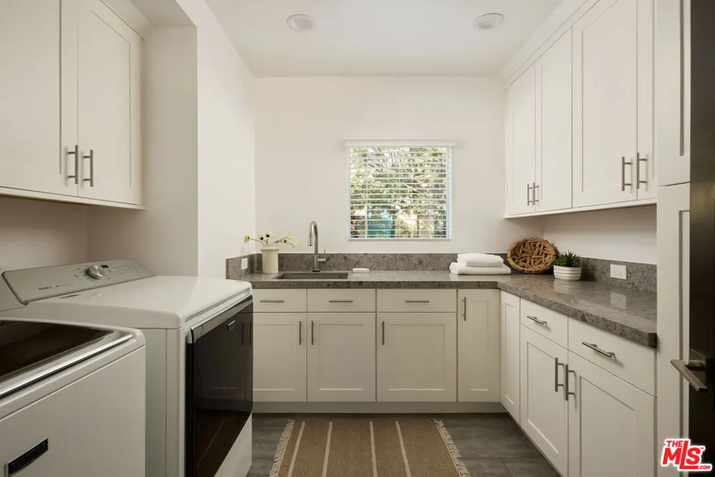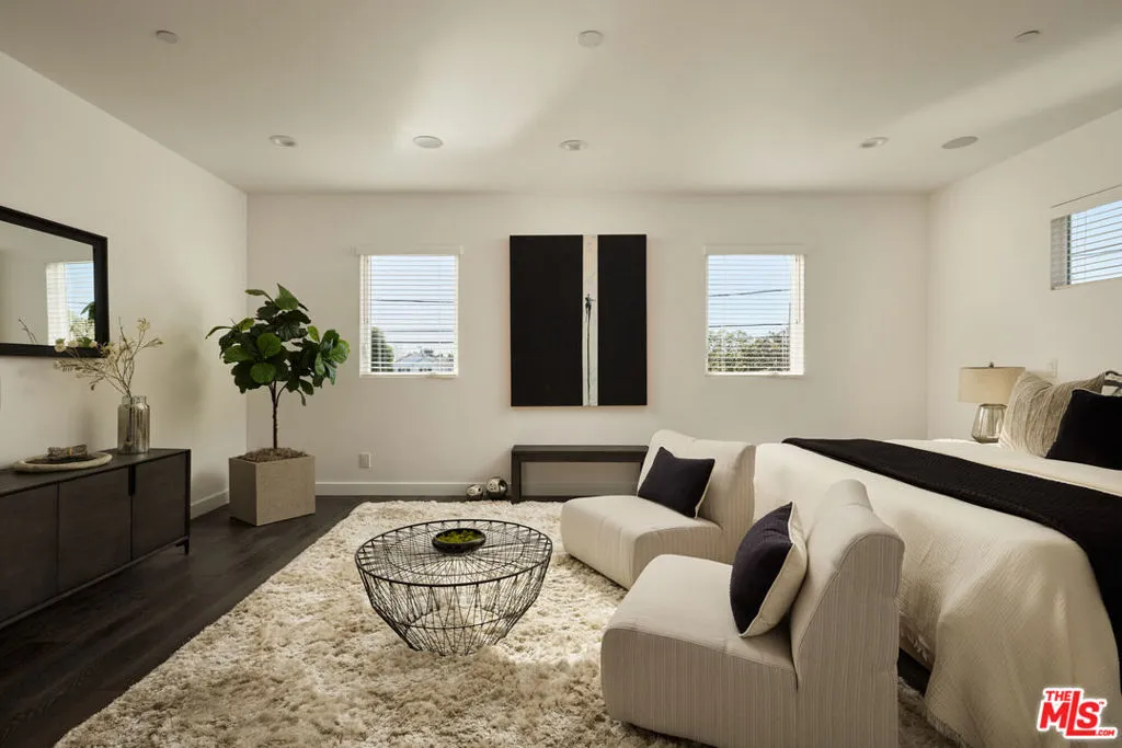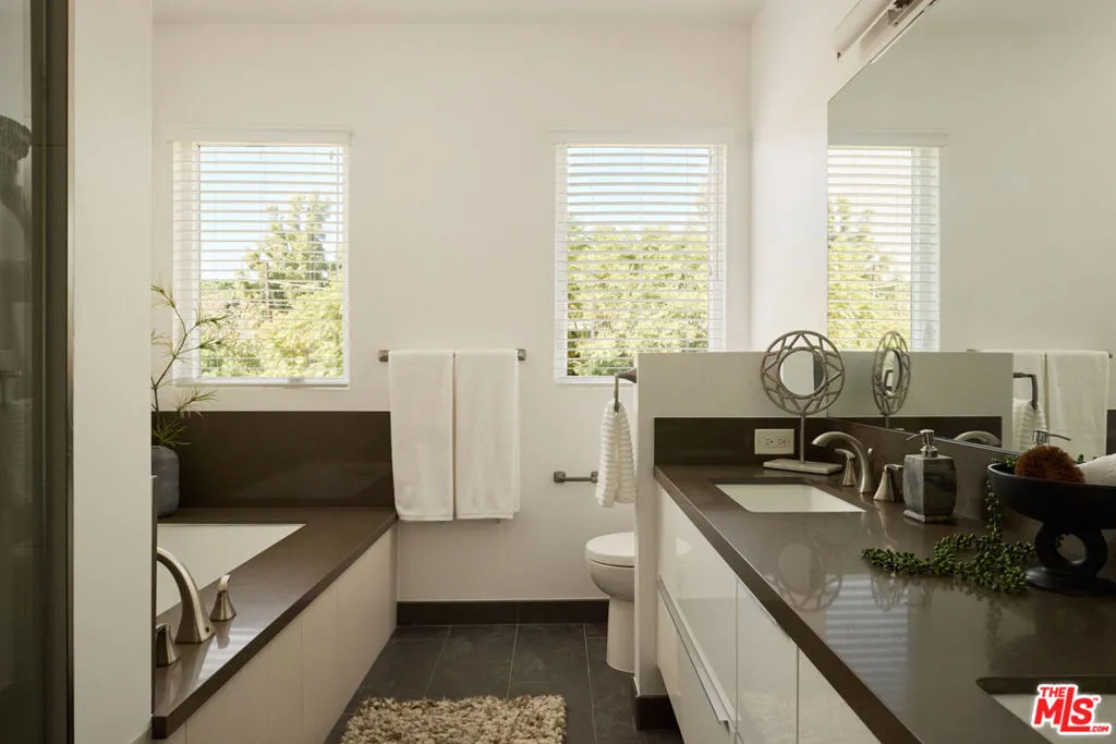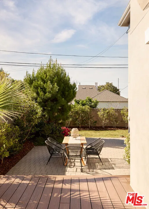 Welcome to your private garden sanctuary in West LA. Tucked away on a very quiet and serene street, this modern contemporary residence offers rare privacy, scale, and exceptional indoor outdoor living in one of the area's most peaceful pockets. Inside, an open floor plan connects oversized living and dining spaces designed for both entertaining and effortless everyday living. Natural light pours into every room, enhanced by expansive windows and skylights, creating bright, uplifting interiors throughout the entire home. The kitchen flows seamlessly to a gorgeous deck through sliding glass doors, creating the perfect setting for al fresco dining and evening gatherings. Beyond the deck, another outdoor lounging area extends into a massive grassy backyard, while lush landscaping wraps around the entire home with mature trees, vibrant flowers, and curated greenery framing every view with nature. The finished true 2 car garage features sleek epoxy flooring, generous storage, and sliding doors that open directly to the backyard. A downstairs en suite bedroom with full bath provides ideal flexibility for guests, office space, or multigenerational living. Upstairs, 3 expansive bedrooms showcase soaring ceilings, skylights, and windows overlooking tranquil greenery, each space drenched in beautiful natural light. Designed for modern comfort, the home includes a whole house speaker system with individual room control and full backyard coverage, creating a seamless audio experience indoors and out. Security is thoughtfully integrated with 5 built in cameras and an ADT system already in place. Modern yet warm, architectural yet inviting, this residence offers the perfect balance of sophistication and comfort. Just a 5 minute walk to Trader Joe's and moments from excellent schools, shops, and restaurants, it delivers peaceful community living with little to no car activity, all while being at the heart of West LA.