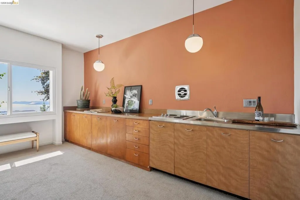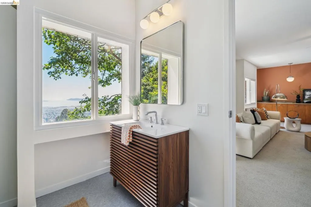 Mid-century with luscious lifestyle; views from all bdrms, living rooms, dining room, & kitchen. Generous great rooms, decks to view, and a pristine pool to vacation at home. Rarely does a Berkeley home of this style and size come to market. Built by the seller's family, tucked away on a quiet street, this home embraces stunning views of the western skyline, SF, Golden Gate Bridge, and the brilliant Bay Area. The rooms appoint the beauty of life, sit and view the Bay or enjoy the many outdoor spaces. Enjoy a dip in the starlit pool, also with views, and for your convenience, there’s a changing room with a shower. Discover inspiration overlooking the vast garden, and find magic in your exchanges with nature. With 4+ bedrooms, an office, and 3.5 bathrooms, this home offers 3 levels with 4000+ sq ft* of artistry. The kitchen: it’s hard to do the dishes when you can’t stop viewing the Golden Gate Bridge, with a large pantry, & eat-in space, that opens to a private deck space. Expansive living; capturing places to retreat, work, or relax. Located in the North Berkeley Hills, embraced by Tilden Park trails, Solano Avenue, N. Berkeley and College Avenue shops & restaurants are just minutes away. *sqft pub. recrd Open 2/19, 2/21, 2/22 Check times. BESO Score 1