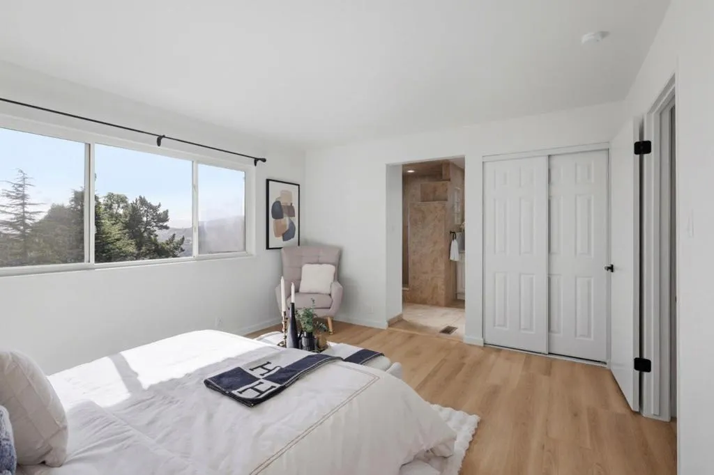 Nestled in the hills of San Carlos in the heart of Mid-Peninsula, this gorgeous light-filled single-level home offers 3 bedrooms and 2 bathrooms. The open-concept kitchen is ideal for family cooking and flows seamlessly into the dining area and spacious family room, where large windows frame serene rear mountain views and bay views fill the home with natural light. The en-suite primary bedroom provides a peaceful retreat with picturesque views of the rolling hills. The oversized garage (nearly 800 sq ft per appraiser) offers space for potential ADU/gym. Outside, the expansive low-maintenance yard with fresh landscaping offers the perfect space to unwind after a busy day in the heart of Silicon Valley. Ideally located just minutes from Heather Elementary School, Big Canyon Park, Eaton Park, and Crestview Park. A bus stop for local schools is conveniently located by the house. Enjoy easy access to Highway 280 and the vibrant downtown San Carlos. Award-winning San Carlos schools. This home truly represents Mid-Peninsula living at its finest. Welcome home!!!