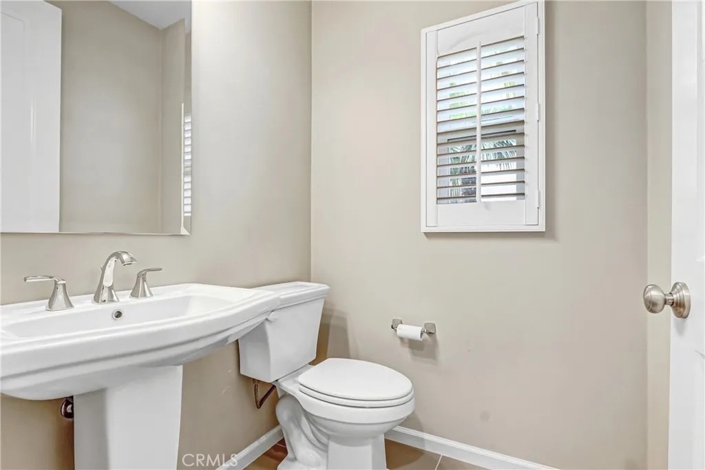 Upgrades include hardwood flooring throughout (carpet in bedrooms and stairs only), plantation shutters, custom two-tone paint, and elegant finishes throughout. The gourmet kitchen showcases white cabinetry, upgraded granite countertops with full backsplash, a large center island with breakfast seating, and premium Bosch stainless steel appliances. The dining area opens to a cozy private backyard through wide sliding glass doors — perfect for relaxing or BBQ. Upstairs features a versatile tech center/loft area ideal for a home office or study space. The primary suite offers recessed lighting, a spacious walk-in closet, dual sinks, and a large walk-in shower. Secondary bedrooms are generously sized with ceiling fans. Convenient upstairs laundry room with skylight adds extra functionality. Additional highlights include: 220V EV charger in garage, Cozy, low-maintenance backyard, Short walking distance to top-ranking elementary school, Access to Portola Springs amenities including pools, spa, parks, tennis courts, and hiking/biking trails, Close to shopping and dining