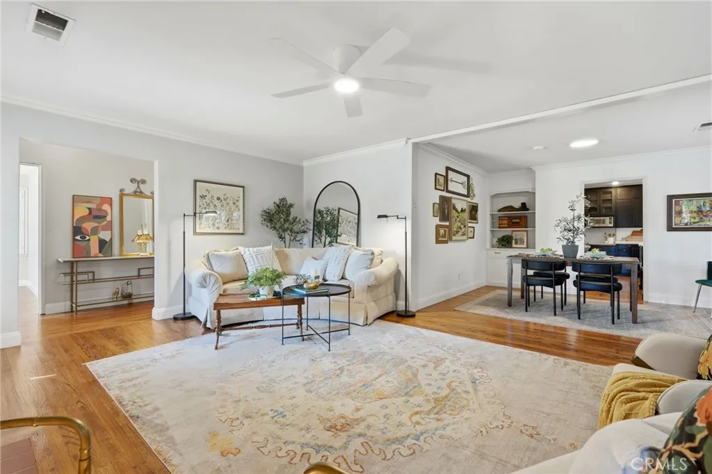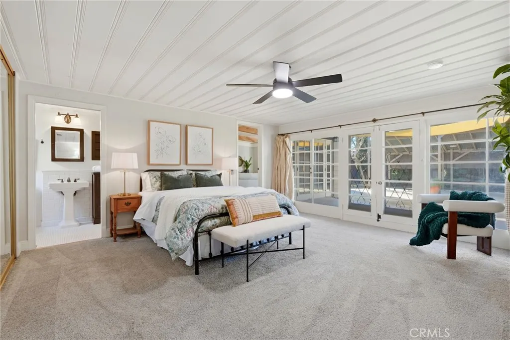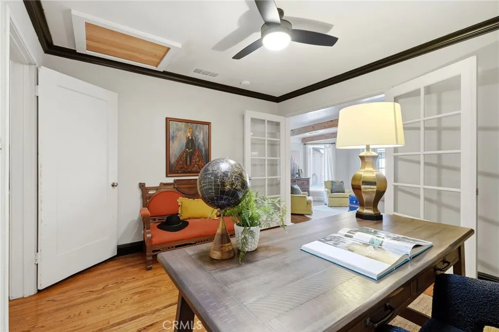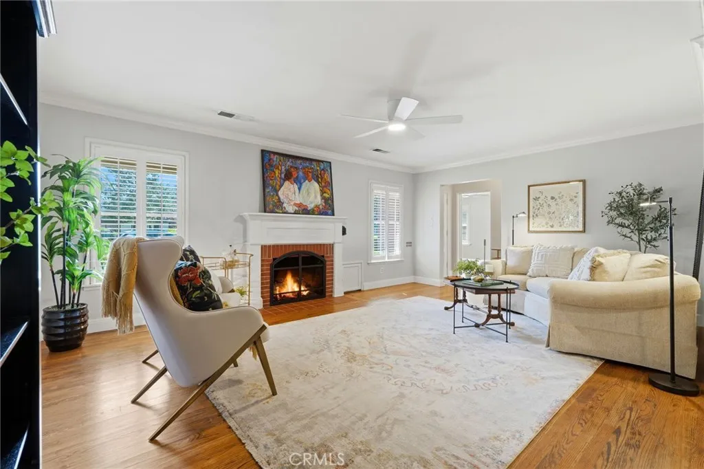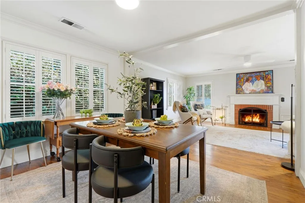 Timeless 1940s charm meets modern comfort at this beautiful home nestled in the heart of Visalia’s beloved Beverly Glen neighborhood. Every space in this home reflects the craftsmanship and character that makes homes in this neighborhood so special - thoughtfully maintained while offering the functionality! Step inside to find rich wood floors, plantation shutters, detailed molding, and abundant natural light throughout. The formal living room with a cozy fireplace and wood hearth flows into a charming dining room with built-in bookcase, while the kitchen features a professional 6-burner gas range, stainless steel appliances, wood bar and countertops, and a built-in dining booth, all opening to a spacious family room with French doors leading outside.The primary suite offers a peaceful retreat with its own brick fireplace, French doors to the backyard, and an updated en suite bath complete with dual pedestal sinks and a custom tile shower. Two additional bedrooms, a dedicated office space, and generous storage provide flexibility for everyday living. Step outside to your own private oasis featuring a built-in pool, covered patio, and mature surroundings ideal for entertaining or unwinding. The detached guest house includes a bedroom area, bathroom, kitchenette, private covered patio, and laundry room, perfect for extended family, visitors, or flexible living arrangements. This is a rare opportunity to own a piece of Visalia charm in one of its most quaint and cherished neighborhoods. Main home square footage is 2,030 according to public records. The ADU is 490 square foot. Main home is 3 bedrooms and 2 bathrooms. ADU has one room, kitchenette, one bathroom and laundry room.