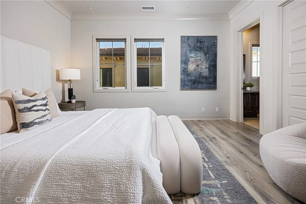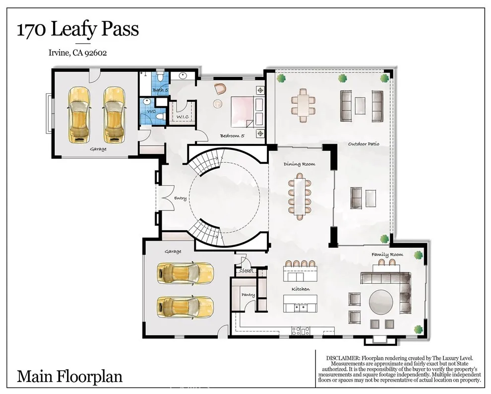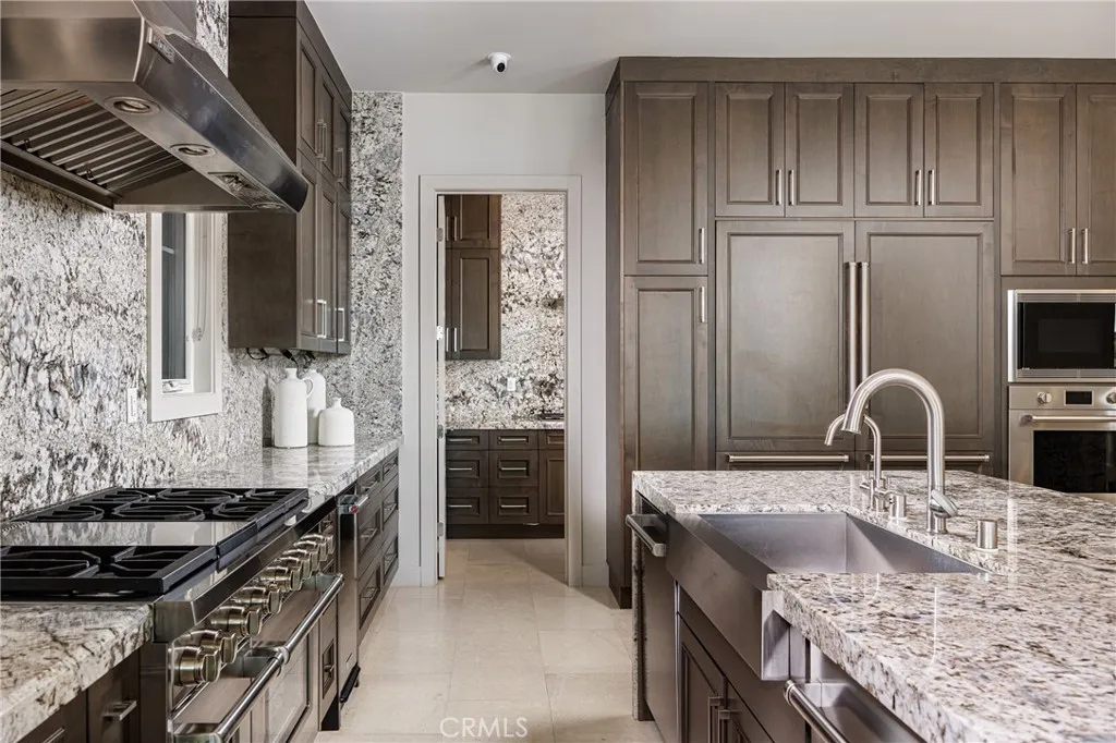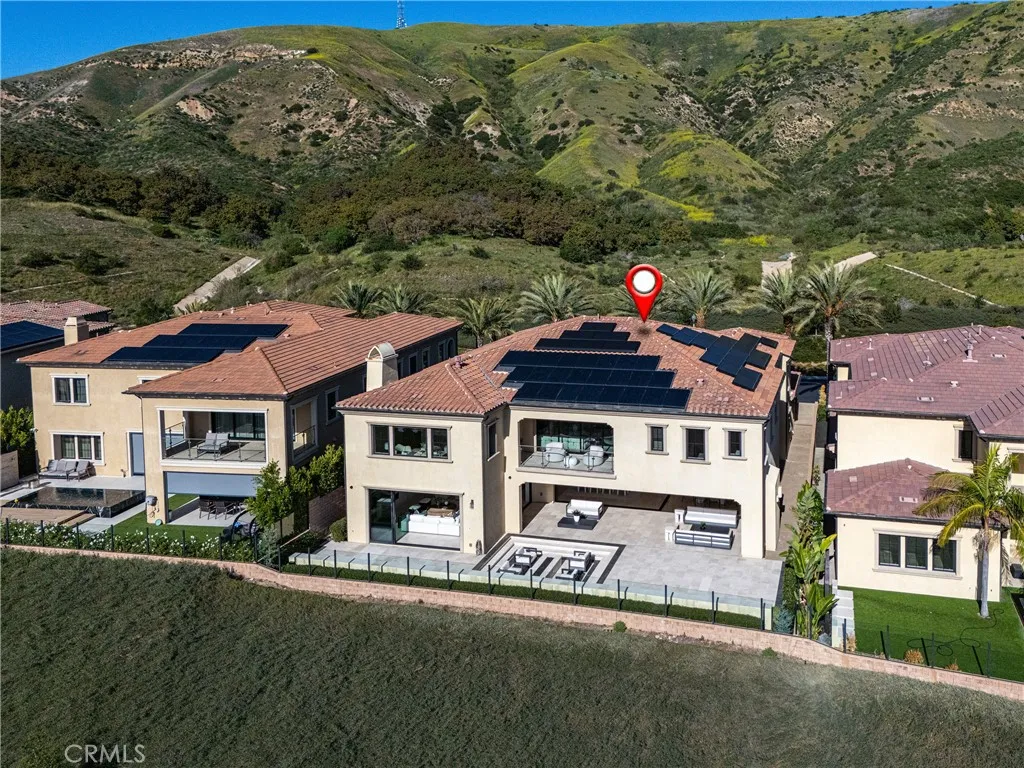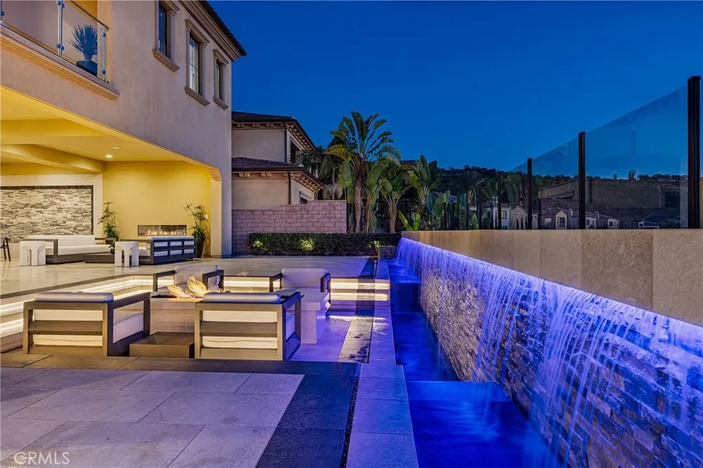 Behind the guarded gates of Orchard Hills, one of Irvine’s most prestigious communities, 170 Leafy Pass sits on the highest street in the neighborhood, pairing a premier location with several million in bespoke high end finishes. Positioned on a single loaded street with sweeping views, the home’s lot premium makes a striking impression before you step inside. Professionally designed landscaping features four mature palm trees, a tranquil water feature, curated greenery, and a custom driveway leading to two separate two car garages. A dramatic entry with 22 foot ceilings, dual staircases, and an open concept floor plan frames the views beyond. The first floor was designed for true indoor outdoor living, ideal for everyday comfort and entertaining, with floor to ceiling sliding glass doors and limestone flooring that extends into the outdoor living space, creating a seamless transition. The kitchen and prep kitchen form a professional grade culinary space with Wolf appliances, Sub Zero refrigerators, soft close cabinetry, extended counter space, and dual islands finished with Blue Galaxy granite. The formal dining area and covered patio accommodate gatherings while showcasing panoramic views across Irvine toward the ocean. The backyard features a sunken fire pit, two waterfall features including one about 70 feet in length, and ambient lighting that creates a stunning atmosphere day and night. A spacious downstairs bedroom includes an ensuite bath and custom closet. Upstairs, a loft with a wet bar and floor to ceiling sliding glass doors opens to a covered deck with some of the best views in the home, and built in surround sound with projector pre wiring allows the space to function as a theater. The primary suite occupies the right wing and includes a retreat with fireplace and a spa caliber bathroom with Calacatta Bluette marble, limestone finishes, a Thermasol steam shower, dual Rain Dome shower heads, towel warmers, a Toto Washlet bidet, and a custom walk in closet. Three additional bedrooms offer ensuite baths and custom closets, while the fifth bedroom is currently configured as an office with hillside views. The home is equipped with a 22kW owned solar system with four Tesla Powerwalls, Crestron whole home lighting, Ubiquiti WiFi and security cameras, surround sound, and motorized blinds, all controllable from your phone. Residents enjoy Orchard Hills amenities, top tier schools, and proximity to shopping, dining, and entertainment.