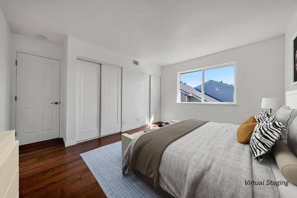 Price Improvement! Welcome to a home that makes daily living feel effortless in the heart of Foster City. Step inside to the vaulted ceilings, an airy openness that invites you to slow down, breathe, and settle in. The living room with its cozy fireplace and seamless flow to the dining area and patio creates the perfect backdrop for relaxed evenings, weekend brunches, and gatherings that stretch late into the night. The kitchen is made for real life, cooking meals, chatting with friends while dinner simmers. The downstairs bedroom offers flexibility for the way people live today whether it's a home office, creative space, or a welcoming guest room. Upstairs, the two sunlit bedrooms offer peaceful retreats, each framed by large windows that bring in the soft glow of morning light. The full bathroom with double sink vanity makes busy mornings smoother, and the conveniently located laundry keeps everything within easy reach. Beyond the front door, lifestyle truly shines. The complex borders a serene lagoon, where morning jogs, evening strolls, and quiet moments by the water become part of your daily rhythm. If you're seeking a home that blends comfort, convenience, and the signature Foster City lifestyle, this gem delivers it beautifully. Virtual staging for illustration purposes.