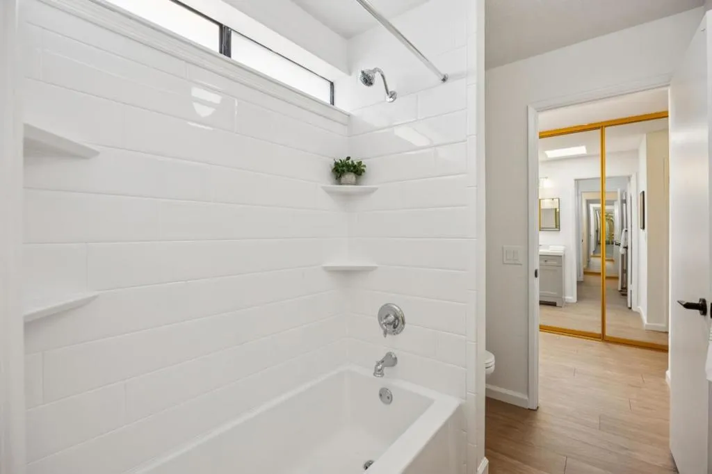 Welcome to this beautifully appointed 2-bedroom, 1.5-bath townhome-style residence offering approximately 1,294 square feet of refined living space in the desirable Rancho Palma Grande community of Santa Clara. Thoughtfully updated and meticulously maintained, this home blends modern sophistication with everyday comfort. The main level features an inviting open-concept living area anchored by a cozy fireplace and sliding glass doors that open to a spacious private yard. Ideal for entertaining or relaxing, the yard offers rare outdoor space for this style of home and includes automatic sprinklers for easy upkeep. The kitchen has been tastefully upgraded with contemporary cabinetry, sleek countertops, luxury vinyl plank flooring, and stainless steel appliances. A remodeled powder room completes the main level. Upstairs, two spacious bedrooms offer tranquil treetop views and generous closet space. Each includes its own remodeled vanity and connects to a shared full bath designed for privacy and functionality. An attached two-car garage adds convenience and value. Residents of Rancho Palma Grande enjoy access to a pool and spa. Ideally located near NVIDIA, AMD, Intel, Applied Materials, and ServiceNow, with easy access to San Tomas Expressway and Highway 101.