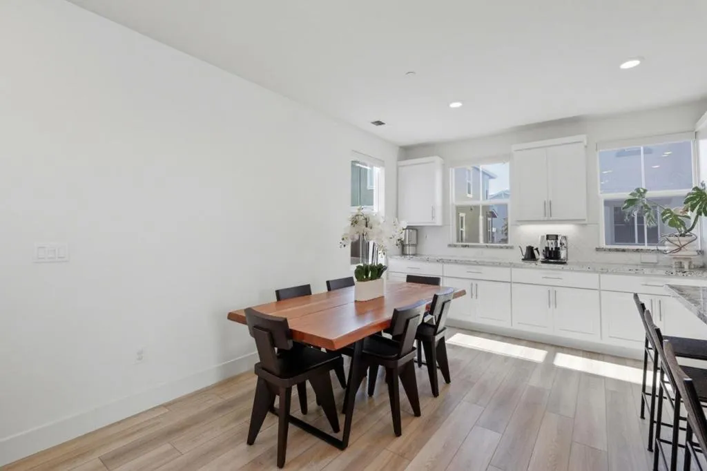 NEW PRICE! LOWEST PRICED SINGLE FAMILY IN THE COMMUNITY! Modern Luxury Meets Effortless Living! Welcome to this stunning 3-year-new northeast-facing home featuring 3 bedrooms, 3.5 bathrooms, and fully paid solar for energy-efficient living. Thoughtfully designed with elegant finishes and an open, functional layout, this home combines modern comfort with timeless style. The first-floor guest or office suite offers flexibility for visitors or remote work. Upstairs, the chefs kitchen showcases a quartz island, upgraded stainless steel appliances, and ample storage, seamlessly connecting to the open living and dining areas that flow to a covered patio, perfect for indoor-outdoor entertaining. Upgrades include luxury vinyl plank flooring, custom wooden shutters, automatic window treatments, and a finished garage with epoxy floors and built-in cabinets. The low-maintenance backyard features turf and a built-in deck for relaxing or hosting. Located in the desirable Bridgeway community with a clubhouse, pool, dog park, and playground. Conveniently close to Don Edwards Wildlife Refuge, Meta, Tesla, Dumbarton Bridge, and I-880. Some furniture may be included for a move-in-ready experience!