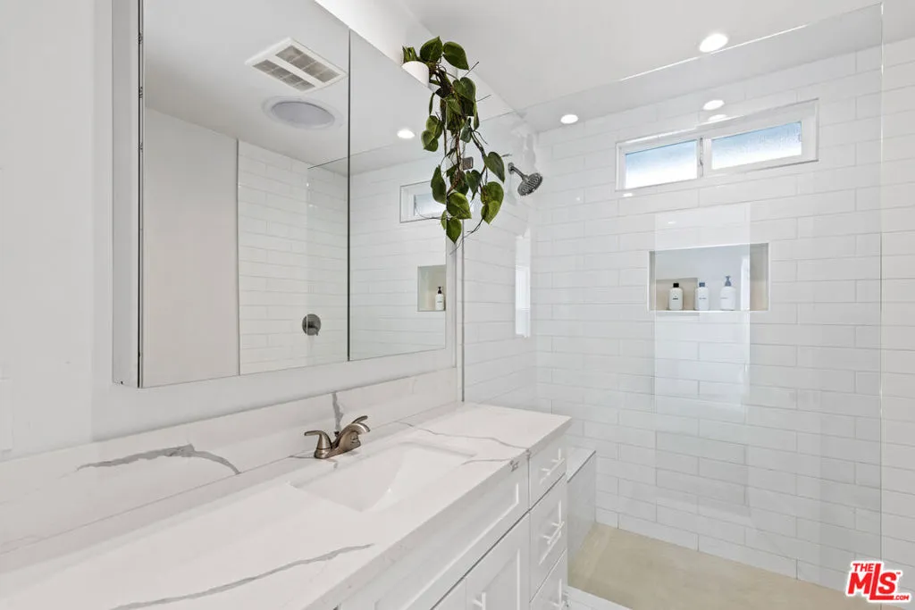 Located in a quiet, sought-after Winnetka neighborhood, this immaculate 4-bedroom, 2-bathroom residence offers 1,742 square feet of meticulously remodeled, open-concept living space on a generous 6,000 square foot lot. From the moment you enter, the sunlit interior impresses with elegant dark wood laminate flooring, recessed LED lighting, and dual-pane windows that create a bright, airy atmosphere. Within the same breath, the kitchen features custom shaker cabinetry, a massive waterfall-edge quartz center island with breakfast bar seating, and premium stainless steel appliances including a new induction technology range and built-in microwave. Both bathrooms have been fully transformed with quartz-topped vanities and designer microcement tile, while the primary suite offers a luxurious walk-in shower with a built-in bench and custom glass enclosure. The wood paneled pool-table recreation room was previously used by the sellers as a sonically treated professional grade recording studio (many grammy nominated tracks were recorded here!), and all the sound proofing remains intact making it perfect for someone in film/tv looking for a great space for their home studio. Step out through the sliding glass doors to discover a private, resort-style backyard oasis designed for the ultimate California lifestyle and entertaining with your family and friends. This low-maintenance retreat features a sparkling free-form swimming pool and spa, a modern white pergola with an integrated fire feature. Or choose the second zen zone, out front yet within the walls of privacy hedging a secondary gravel-scaped conversation area with lemon tree and lounging area. The sellers completed major upgrades including a new roof in 2023, plus a full pool renovation with new plaster and tile, conversion to saltwater, and a brand-new $5,000 pool heating system. Additional upgrades include copper plumbing and Tesla solar panels, providing both efficiency and peace of mind. Perfectly situated near Pierce College and the world-class shopping and dining of Warner Center, this home offers easy access to the 101 Freeway and the Orange Line for effortless commuting.