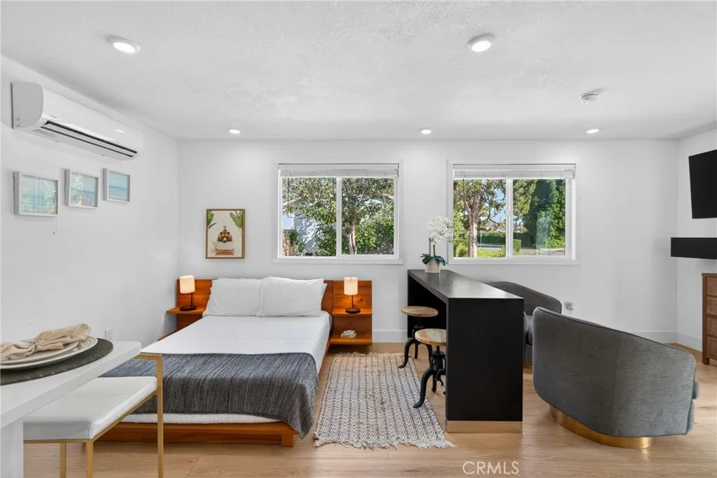 Newly constructed and thoughtfully designed, this fully furnished Junior ADU offers a turnkey living experience with style, comfort, and efficiency in mind. The space features a bright open layout with wide-plank flooring, recessed lighting, and a clean contemporary aesthetic throughout. The modern kitchenette is equipped with sleek cabinetry, stainless appliances, open shelving, and a breakfast bar, while the living/sleeping area provides a comfortable, functional layout ideal for everyday living. A beautifully appointed bathroom with a glass-enclosed shower and designer fixtures adds a touch of luxury. Additional highlights include an in-unit washer and dryer, split-system heating and air conditioning, and all utilities included — even cable and Wi-Fi — making this an exceptionally convenient and hassle-free residence. Located near Cal State Northridge, this property has previously accommodated visiting faculty and is well suited for anyone seeking a quiet, well-maintained living environment. Standard lease term is 12 months, with shorter terms available at adjusted pricing.