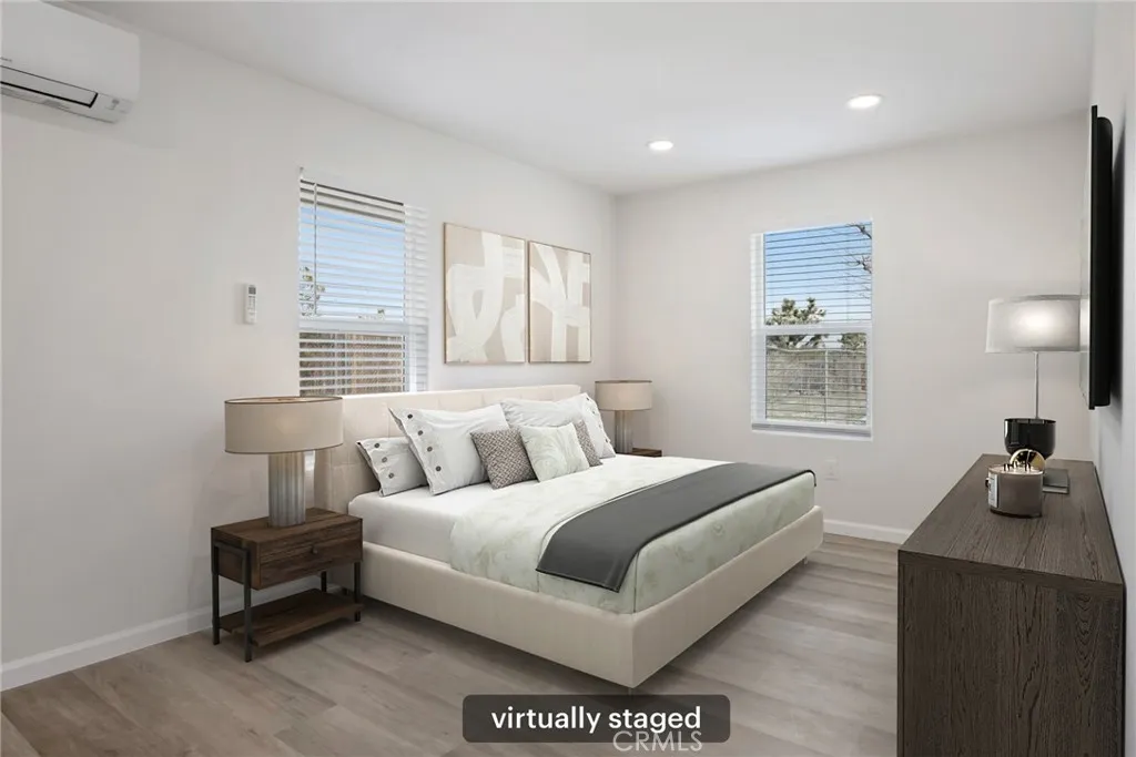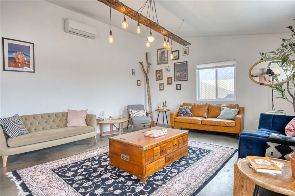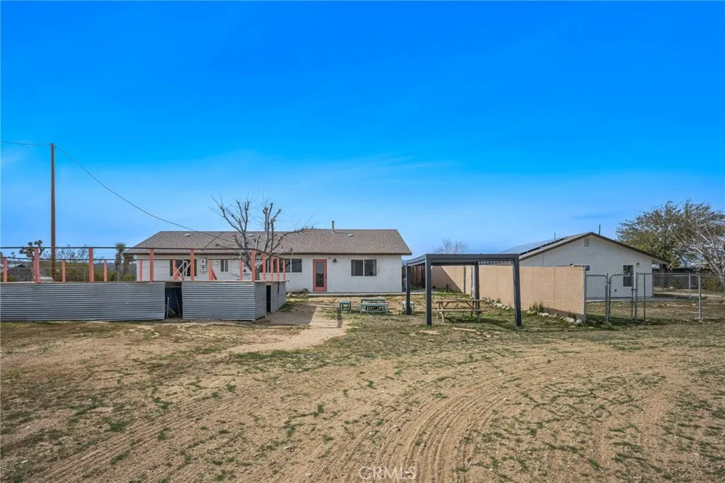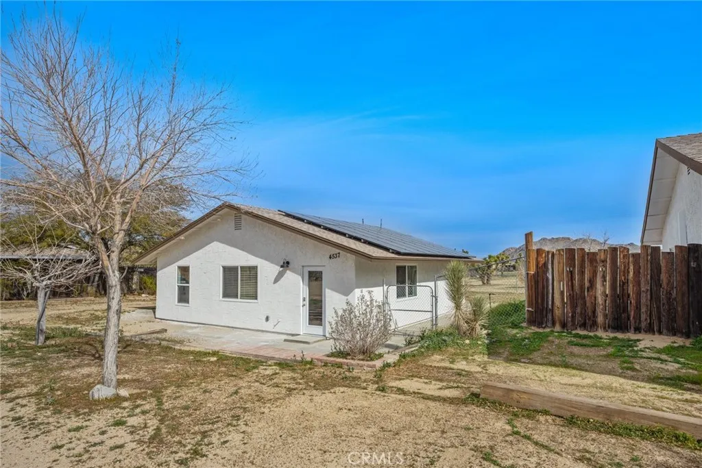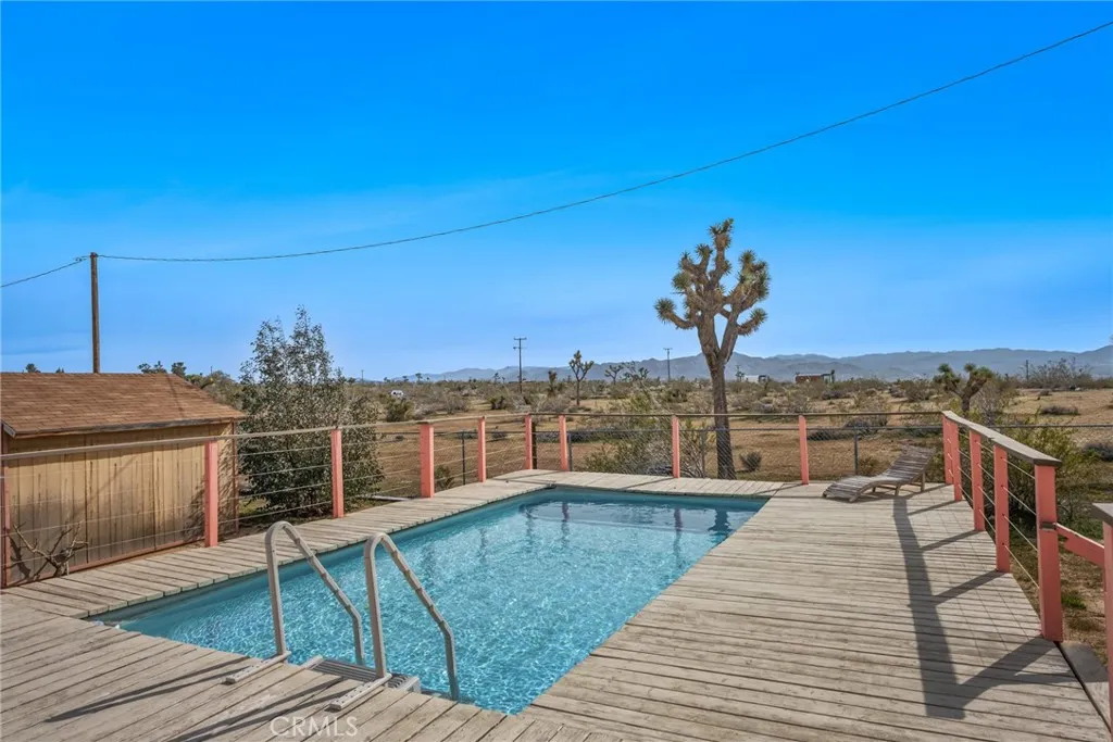 Rare opportunity to own two fully renovated homes on one expansive 1.08-acre lot, showcasing panoramic views of the Joshua Tree mountain range. This exceptional property is ideal for owner occupancy or investment, with a successfully proven short-term rental history as an Airbnb “Guest Favorite,” boasting a 4.9-star average rating and over 115 reviews. The main residence spans 2,005 sq ft and offers 4 bedrooms and 2 bathrooms, thoughtfully updated with modern finishes throughout. The newly remodeled bathrooms showcase beautiful tilework, stylish vanities, and contemporary hardware. The open-concept kitchen flows seamlessly into two distinct living areas, creating an ideal space for entertaining or relaxing. Highlights include quartz countertops, a pantry, updated recessed lighting, and newer electric appliances. The fully renovated ADU offers approximately 960 sq ft, featuring 2 bedrooms and 1 bathroom—perfect for extended family, guests, or rental income. Both units are equipped with efficient mini-split AC/heating systems for year-round comfort. Step out back to enjoy a 10-person above-ground pool, expansive deck, and spacious lot ideal for gatherings or other projects. Pull into the large circular driveway providing parking for up to 10 vehicles, with space for an RV or oversized vehicle. Additional features include solar panels for energy efficiency and a location that’s hard to beat—just 15 minutes to Joshua Tree National Park and 15 minutes to Pioneertown.