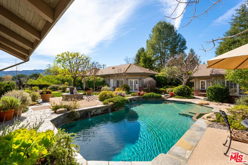 Rarely available in Countryside Estates, this beautifully maintained English Country estate sits on a flat, fully usable acre in a peaceful setting surrounded by the natural beauty of the Santa Monica Mountains. Lovingly cared for by the same family for decades, the property offers exceptional privacy, space, and flexibility while remaining close to everyday conveniences and the coast. The approximately 5,000-square-foot residence offers 6 bedrooms and 7 bathrooms, with spacious, light-filled living areas designed for comfortable living and easy entertaining. Recent updates include new flooring in the living room and new carpet in the primary suite. Two separate guest houses provide outstanding versatility for extended family, guests, home offices, or creative space, creating a rare multi-structure, compound-style opportunity. The grounds feature a pool, spa, and sports court with a new overhang, along with expansive usable land and mature landscaping. The backyard enjoys open mountain views and beautiful sunset exposure, creating a private, nature-filled setting. A rare 7-car garage plus dedicated RV parking offers exceptional flexibility for vehicles, recreation, or storage. Energy features include owned solar (52 panels) and a 26kW Generac Guardian whole-home generator. Located in the sought-after Countryside/Cornell area near Paramount Ranch, the property offers a unique balance of privacy and accessibility just minutes to the 101 freeway, shopping and dining in Agoura and Westlake Village, and approximately 15 minutes to the beaches of Malibu.
