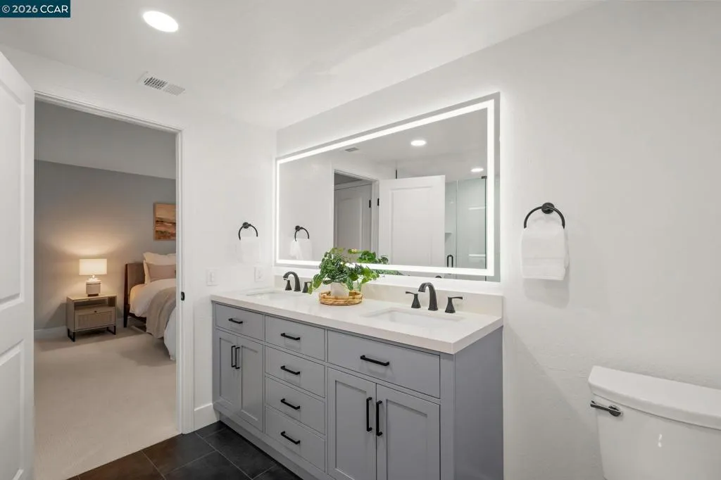 This beautifully renovated 4-bd,3-ba,1,972 sq ft home in the prestigious Twin Creek enclave of San Ramon is thoughtfully updated&designed w/modern sophistication&comfort.This exceptional residence features a fully renovated chef’s kitchen,updated bathrooms,wide plank luxury flooring,dual pane windows,designer paint colors,new cabinetry&appliances,updated lighting,new HVAC&dual living spaces.The chef’s kitchen is the heart of the home,showcasing premium appliances, generous storage&contemporary designer finishes.The great room encompasses the living,dining &kitchen spaces highlighted by soaring vaulted ceilings&natural light.The inviting family room offers a wood-burning fireplace&built-in desk area.A main-level bedroom& full bath provide ideal flexibility for guests or private office.The primary suite is a true oasis w/ spa-inspired en suite featuring custom shower, soaking tub, dual-sink marble vanity&three closets.The backyard retreat includes manicured landscaping,citrus trees,spacious deck w/trellis—perfect for entertaining.Residents enjoy access to community pool,tennis&basketball,award-winning schools&close proximity to San Ramon City Center,parks hiking&commuter routes.A rare opportunity to acquire a fully renovated home in one of SR's most desirable neighborhoods!