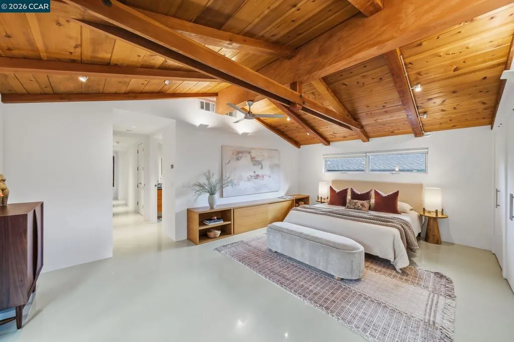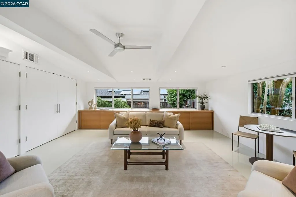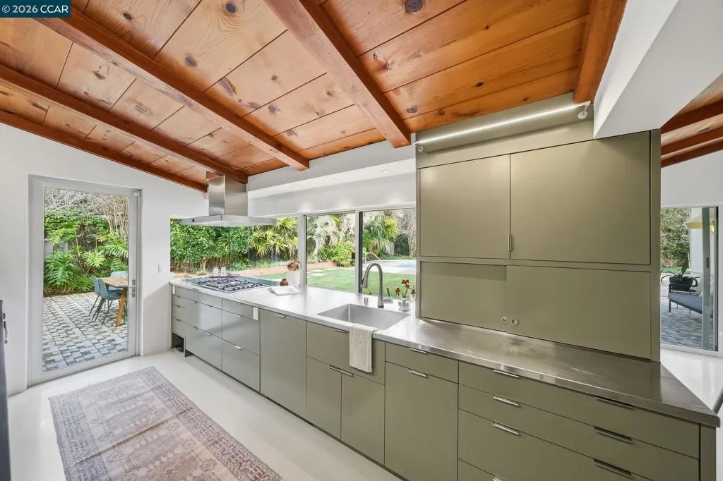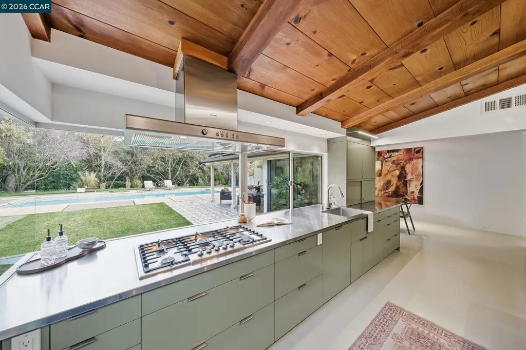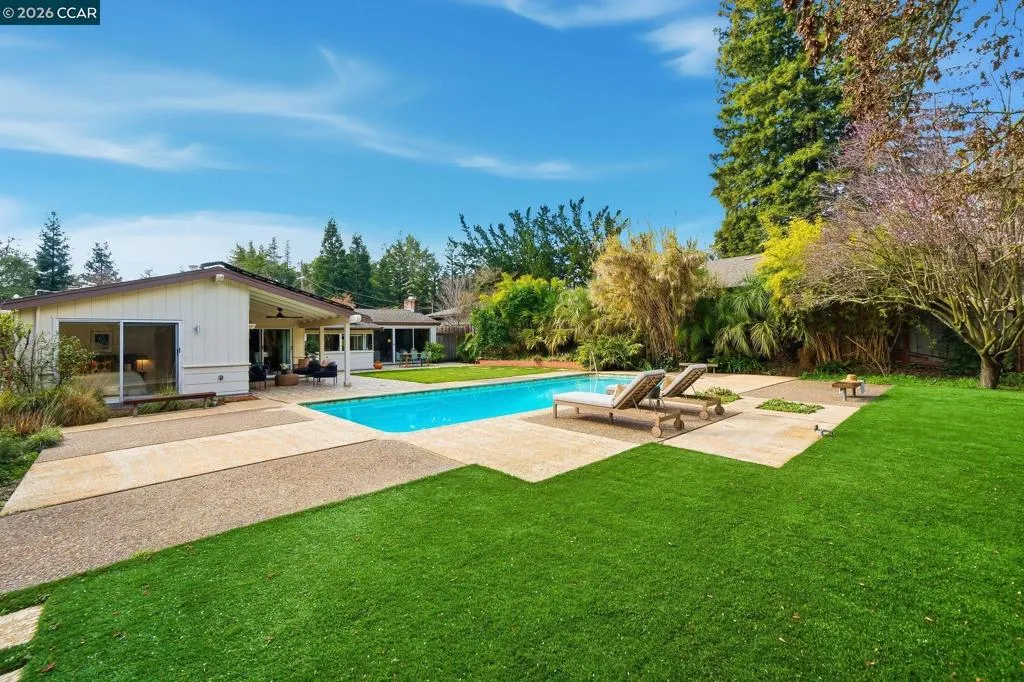 Iconic mid-century home, remodeled in 2015 into an effortlessly cool and quintessentially California retreat. This one-of-a-kind masterpiece sits on a verdant, half-acre lot in the heart of Lafayette’s prestigious Happy Valley and offers privacy, great design, and seamless indoor-outdoor living. The flexible floorplan includes 4 bedrooms, 4 baths, a dedicated office, and separate living, dining and bonus rooms. High-end custom finishes elevate every space with top-of-the-line appliances (Thermador, Bosch and Sub-Zero), Fleetwood windows and doors, radiant heating, IPE decking, and an eco-conscious grey water recycling system. Designer, epoxy resin flooring creates a luminous and seamless architectural finish that is both durable and chic. Custom cabinetry with sleek honed slate countertops adds depth and texture to the kitchen and bathrooms. Every detail has been carefully selected to celebrate the home’s mid-century roots while embracing modern luxury and sustainability. The lush, private backyard has an inground pool with separate hot tub and is ideal for entertaining. This exceptional property is all within easy reach Lafayette’s vibrant downtown, convenient commute routes, the Lafayette Reservoir, Oakwood Athletic Club and top-rated schools.
