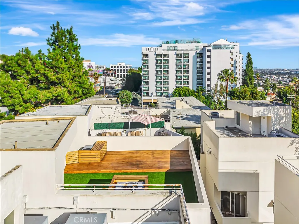 Crowning the home is the show-stopping rooftop deck—your private urban oasis—featuring a custom deck, plush artificial turf, and breathtaking panoramic views sweeping across the entire Los Angeles skyline. Twinkling city lights, open skies, and total privacy create the perfect setting for sunset cocktails, entertaining under the stars, or simply taking in the energy of the city from above.