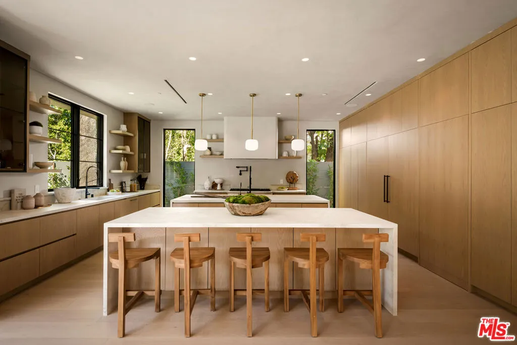 Introducing a newly rebuilt and completed in 2026, 6-bedroom Modern Organic Farmhouse with theater in prime Sherman Oaks, offering over 5,000 square feet of elevated architectural living. Thoughtfully designed with scale, light, and seamless flow, this two-story estate blends warm organic textures with contemporary sophistication. The grand living room makes an unforgettable statement, opening through oversized sliding doors to a private resort-caliber backyard. At the heart of the home, the chef's kitchen is a true showpiece, featuring dual oversized islands, custom cabinetry, and high-end appliances. The formal dining area is beautifully integrated within the main living space, creating an elegant setting for both intimate dinners and large-scale entertaining. The main level offers three bedrooms along with a dedicated office and a custom screening room. A separate entry off the driveway provides flexibility for a full guest wing on the main floor, ideal for extended family, guests, or private workspace. Upstairs, four bedrooms provide exceptional comfort and privacy, highlighted by an extraordinary primary retreat. The expansive suite features a massive walk-in closet and a spa-inspired bathroom complete with a freestanding soaking tub and an oversized double-head shower. The outdoor grounds rival a luxury resort, showcasing a sparkling pool, expansive cabana, and generous lounge areas ideal for year-round entertaining. Additional features include an upstairs laundry room, gated and spacious parking with a two-car garage, and smart home and security features. Located within the highly sought-after Dixie Canyon Community Charter School district, moments from the finest dining and shopping along Ventura Boulevard. A rare offering where scale, design, and location converge.