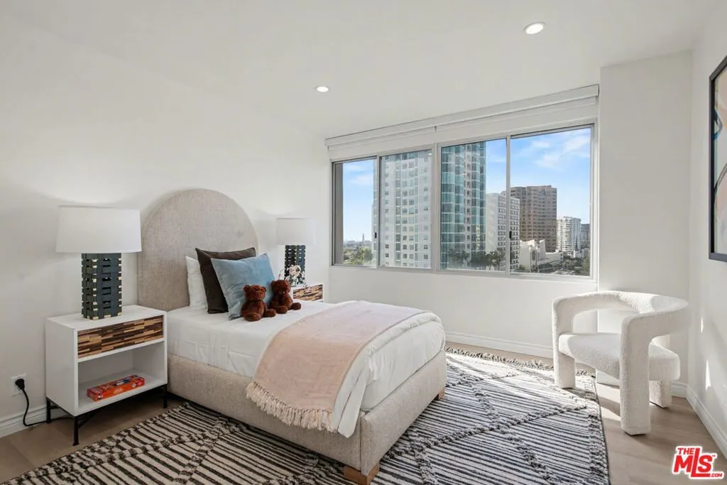 Newly remodeled Stunning Contemporary 5 bed/4.5 bath with unparalleled city, golf course and mountain views in the desired full service Comstock Towers on the Wilshire Corridor. Experience elevated living in this fully updated, sophisticated one level 3,100+sf condo. Showcasing breathtaking, unobstructed views of the Los Angeles Country Club golf course, Century City skyline, and surrounding mountains, this chic and spacious unit is designed for both grand entertaining and comfortable everyday living. A double-door entry opens to a light-filled, expansive floor plan featuring newer high-end designer finishes including marble and light oak hardwood flooring . The living room is framed by straight-on Century City views, enhanced by LED recessed lighting and custom auto shades. The open, fully remodeled kitchen includes stunning quartzite countertops, stainless steel appliances, a generous walk-in pantry, breakfast bar, and a separate breakfast room/flex space. A full laundry room with its own entrance and additional storage is conveniently located just off the kitchen.The dramatic dining room, surrounded by windows, captures stunning panoramic views, perfect for intimate dinners or large gatherings. Also includes a built-in entertainer's bar counter with wine storage. The grand primary suite is a private retreat, ideally positioned at the back of the unit, opposite side of the other 4 bedrooms, with panoramic unobstructed mountain and golf course views. The suite features newly built custom closets and shelving. The spa-inspired primary bath is completely renovated with quartz countertops, new cabinetry, dual sinks, a vanity area, oversized spa tub, and a luxurious rain shower. With 3 of the 5 bedrooms having en-suite bathrooms, all with newly installed custom closets and newer hardwood flooring. In addition, a beautifully remodeled full hallway bath and stylish powder room complete the layout. Additional highlights include updated hardware throughout, abundant storage with multiple closets and built-in shelving, and storage cabinetry in the entry hall. Sophisticated, spacious, and thoughtfully designed, and ideal proximity to Beverly Hills, UCLA and Westfield Century City Mall. Warner Avenue Elementary. Move-in ready!