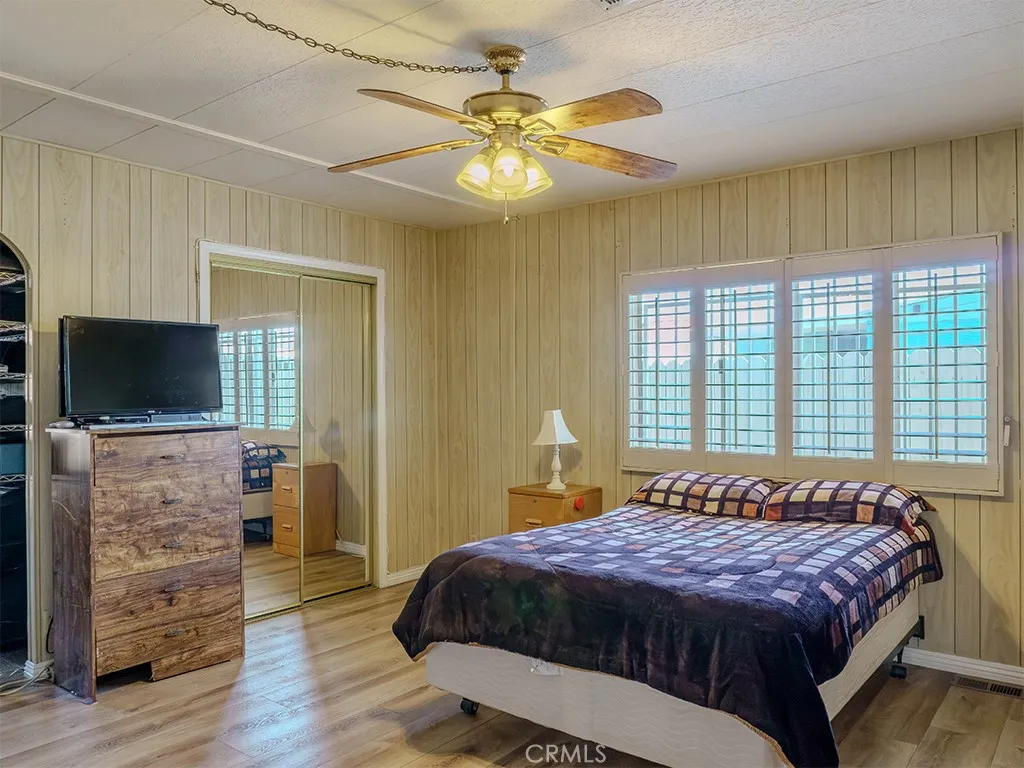 Discover this beautifully upgraded senior manufactured home on attached land, featuring new flooring, elegant plantation shutters, and a stylish wet bar. Enjoy a new garbage disposal, upgraded plumbing, modern bathroom vanity, and spacious laundry cabinets. The covered carport adds convenience, and you'll love being close to shopping, the 10, 215, and 60 freeways. With low HOA fees and breathtaking mountain views, this is the perfect place to call home.