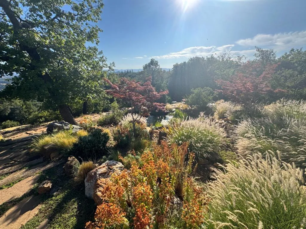 Perched above historic Murphys in a private gated community, this remarkable 45+ acre estate spans two legal parcels and captures sweeping panoramic views of the Sierra Foothills and town below just minutes from downtown. The 3,623 sq. ft. lodge-style residence blends timeless craftsmanship with natural materials, featuring radiant heated floors, a quarter-sawn oak entry door with Frank Lloyd Wrightinspired beveled glass, soaring 30+ ft ceilings, massive kiln-dried beams, and an antique Riverside wood-burning stove. Additional improvements include a 748 sq. ft. guest cottage, 2,312 sq. ft. garage/workshop, patios, fire suppression system with 10,000-gallon tank, irrigation, pond, stream, waterfall, and a treehouse with plumbing and power. Parcel 1 (22.03 ac) includes the residence and structures; Parcel 2 (23.65 ac) offers land ideal for expansion, vineyard potential, or added privacy. Unlike many estate properties that impose themselves on the land, this home was thoughtfully designed to harmonize with its untouched native landscape its natural materials, scale, and setting allowing it to disappear into the terrain rather than dominate it. The result is a retreat that feels disdiscovered rather than built a one-of-a-kind Sierra Foothill sanctuary.