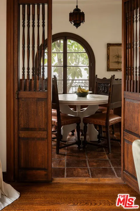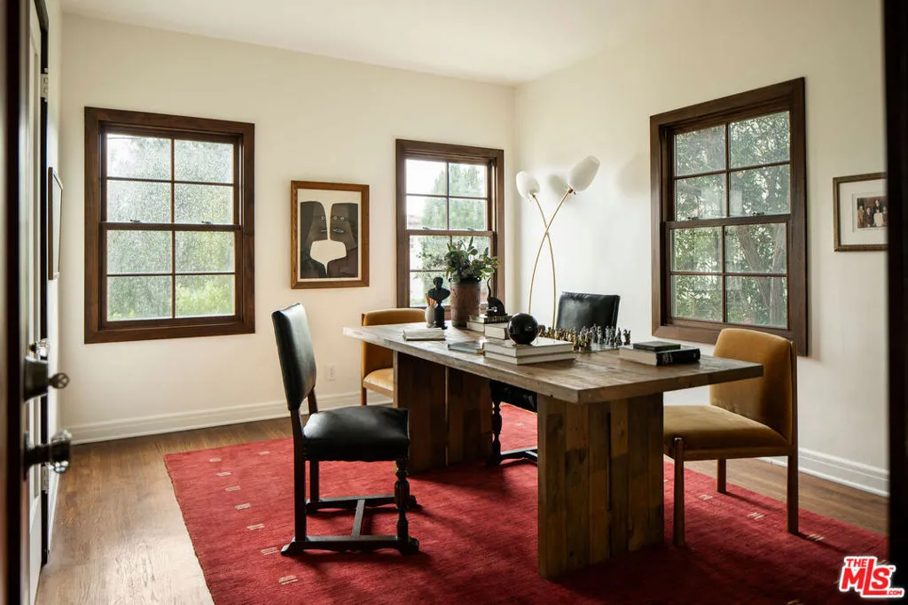 :: The Doumakes House, 1928 :: The Doumakes House holds the honor of being Landmark No. 1, the first designated residential historic landmark, and the first home ever awarded a Mills Act contract in all of Unincorporated Los Angeles County. Painstakingly and reverently restored by its current owner, this home stands in quiet defiance of today's culture of soulless flips. Every decision reflects a devotion to authenticity, craftsmanship, and longevity, an approach now rarely encountered. Originally commissioned by James Doumakes, a Greek immigrant and founder of the iconic Doumak marshmallow company, the home carries with it a rich story of innovation and enterprise. James began manufacturing marshmallows in Los Angeles in 1921 using a cast-mold process; his son, Alex Doumakes, would later revolutionize the industry by inventing and patenting the extrusion process in 1954, still the global standard today. In its present form, The Doumakes House represents an intentional and harmonious marriage of irreplaceable early craftsmanship and thoughtfully integrated modern comforts, all supported by extensively updated systems. Upon entry, the home immediately announces its grandeur. The formal living room is defined by a dramatic barreled vaulted ceiling, an arched original picture window, and an ornate plaster hearth framing a restored, working gas fireplace. An expansive dining room follows, illuminated by original iron sconces and chandelier, and connected through hand-carved doors to a luminous breakfast area lined with arched windows and the remodeled kitchen. Designed by A1000X Better with a mandate to preserve historic integrity while elevating daily living, the kitchen features custom walnut cabinetry with soft-close drawers, butcher block countertops, Tabarka tile backsplash, a Shaw's apron sink, panel-ready appliances, wine refrigerator, and generous storage throughout. Adjacent to the kitchen is a bright den that opens to the deck and yard via historically accurate, tri-folding mahogany doors, creating seamless indoor/outdoor flow ideal for entertaining. Upstairs, a series of hand-carved wooden doors lead to three bedrooms. The primary en-suite offers a walk-in vanity and closet, professionally restored original French windows with laminated glass, and a beautifully appointed bathroom featuring period-correct tile and a shower with head and body jets. Two rear bedrooms, one with its own balcony enjoy sweeping southern views, capturing sunrises, sunsets, aircraft descending into LAX, and spectacular Fourth of July fireworks. A pink-and-black tiled hall bath includes both a soaking tub and a separate shower with head and body jets. Below, a generously sized basement, accessible from the kitchen adds valuable flexible space. Beyond aesthetics, the restoration placed equal emphasis on infrastructure. Additional upgrades include central HVAC, seventeen custom historic-style double-pane Jeld-Wen windows, copper plumbing throughout (including the city connection), a retrofitted foundation, upgraded electrical panel, whole-house water filtration system, restored original floors, chimney liner and cap reconstruction, fireplace structural reinforcement, copper gutters and drainage, two rebuilt balconies, drought tolerant landscaping, new front walkway and courtyard with moorish tiles and working front fountain. The new roof incorporates historic terracotta tiles repurposed from a 17th-century church in France, an extraordinary and poetic detail befitting the home's stature. Located within The View Park Historic District , the largest National Register historic district in California recognized for African American history, The Doumakes House is a contributing home to the district and a rare offering, intended for a discerning buyer who values history, architecture, craftsmanship, and homes with true soul. The property also comes with a Mills Act contract for a healthy property tax incentive.