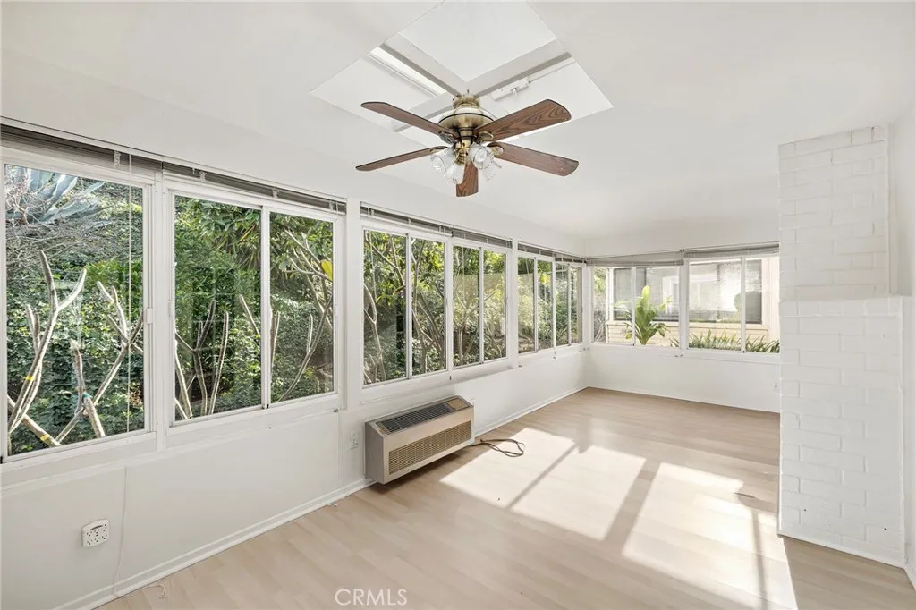 Welcome to 5092 Tero, a beautifully expanded residence nestled within the prestigious Gate 11 enclave of Laguna Woods. This highly sought-after Villa Terraza model offers approximately 1,950 square feet of thoughtfully designed living space, featuring two bedrooms, two bathrooms, and three fully enclosed additions that create a rare sense of openness, versatility, and comfort. Soaring vaulted ceilings enhanced by solar tubes bathe the home in natural light, while the elegant living room is centered around a warm wood-burning fireplace, creating an inviting atmosphere for relaxating or entertaining. Double French doors lead to a spacious, versatile room, ideal for hosting gatherings or intimate dinners. The enclosed additions provide remarkable flexibility, easily accommodating a sophisticated home office, sunroom, fitness studio, creative space, or private retreat — allowing the home to evolve with your lifestyle. Built-in cabinetry throughout offers exceptional storage while maintaining a clean, refined aesthetic. The gated front courtyard is a true sanctuary, featuring lush landscaping that creates a serene, resort-like setting for morning coffee or peaceful evenings under the California sky. The primary suite is equally impressive, highlighted by an oversized, walk-in closet designed for maximum organization and functionality. A rare, fully paid solar system powers the central air conditioning, delivering both environmental efficiency and meaningful utility savings Additional features include a dramatic double-door entry, a two-car garage, and a quiet private street location on a lot adorned with mature fruit trees. Residents of Laguna Woods enjoy a world-class 55+ lifestyle with access to 36 holes of championship golf, five swimming pools, tennis and pickleball courts, seven clubhouses, three fitness centers, equestrian facilities, and more than 250 social clubs and organizations. This is a rare opportunity to experience expanded space, privacy, and refined living in Southern California’s most desirable 55+ community.